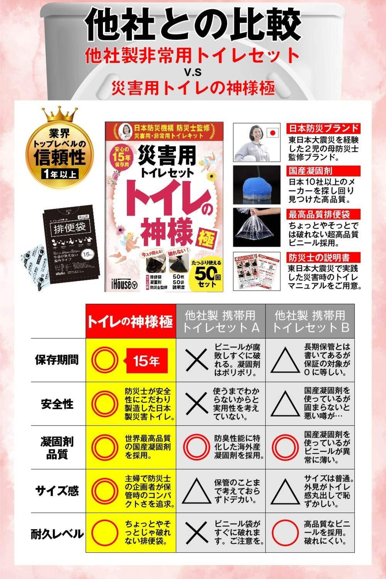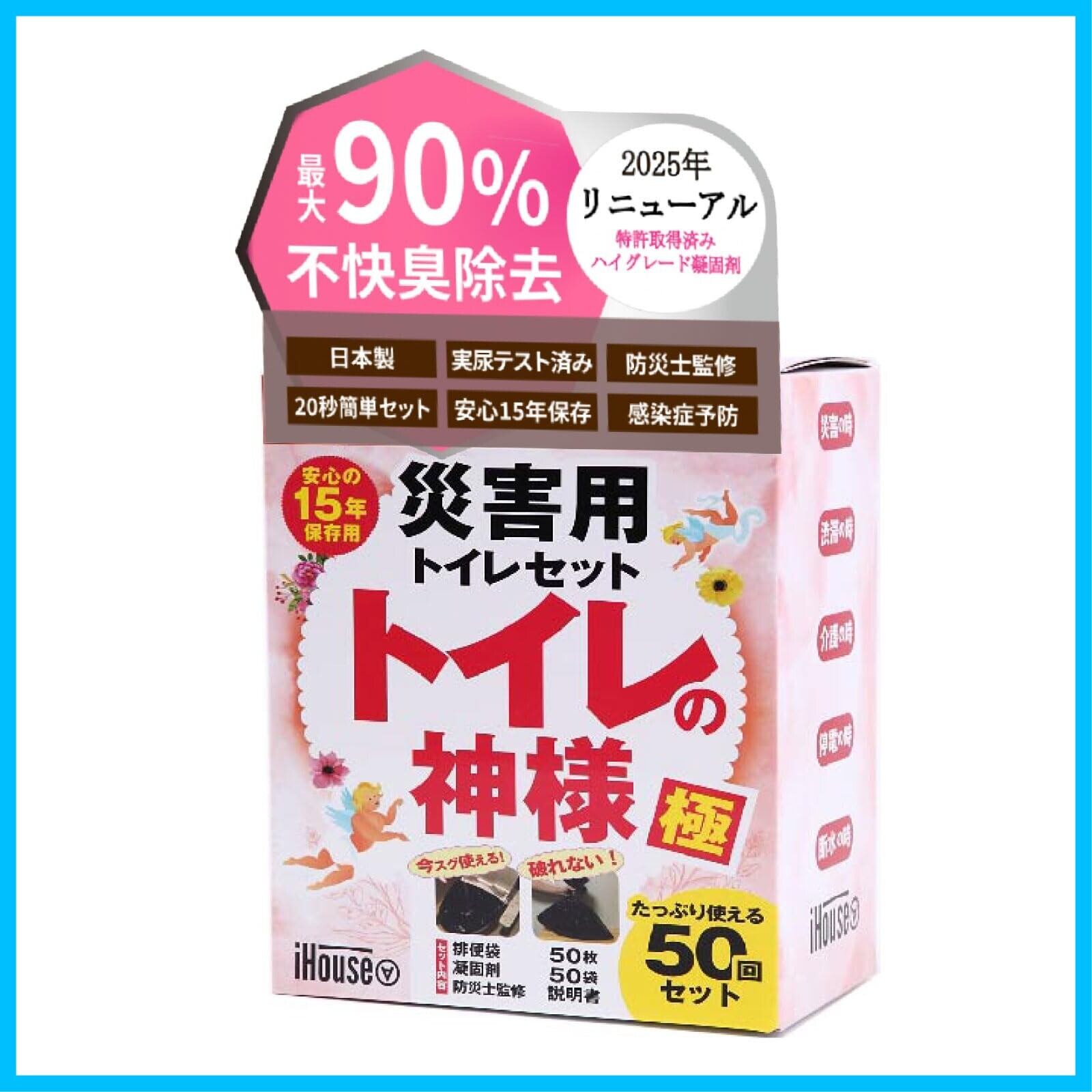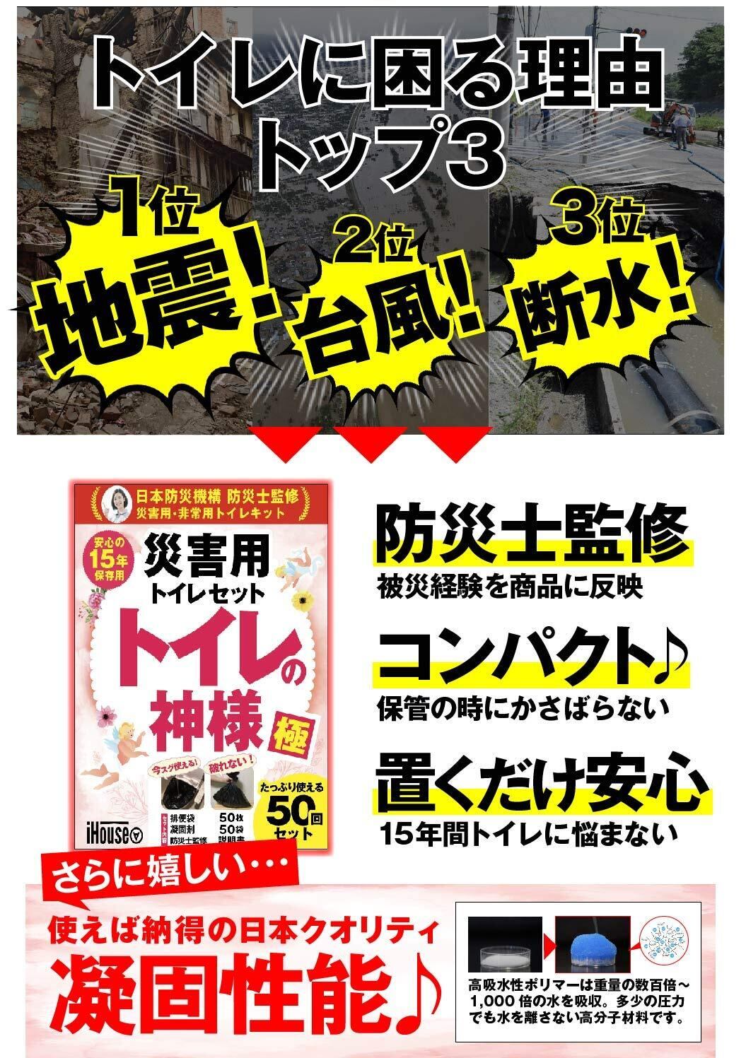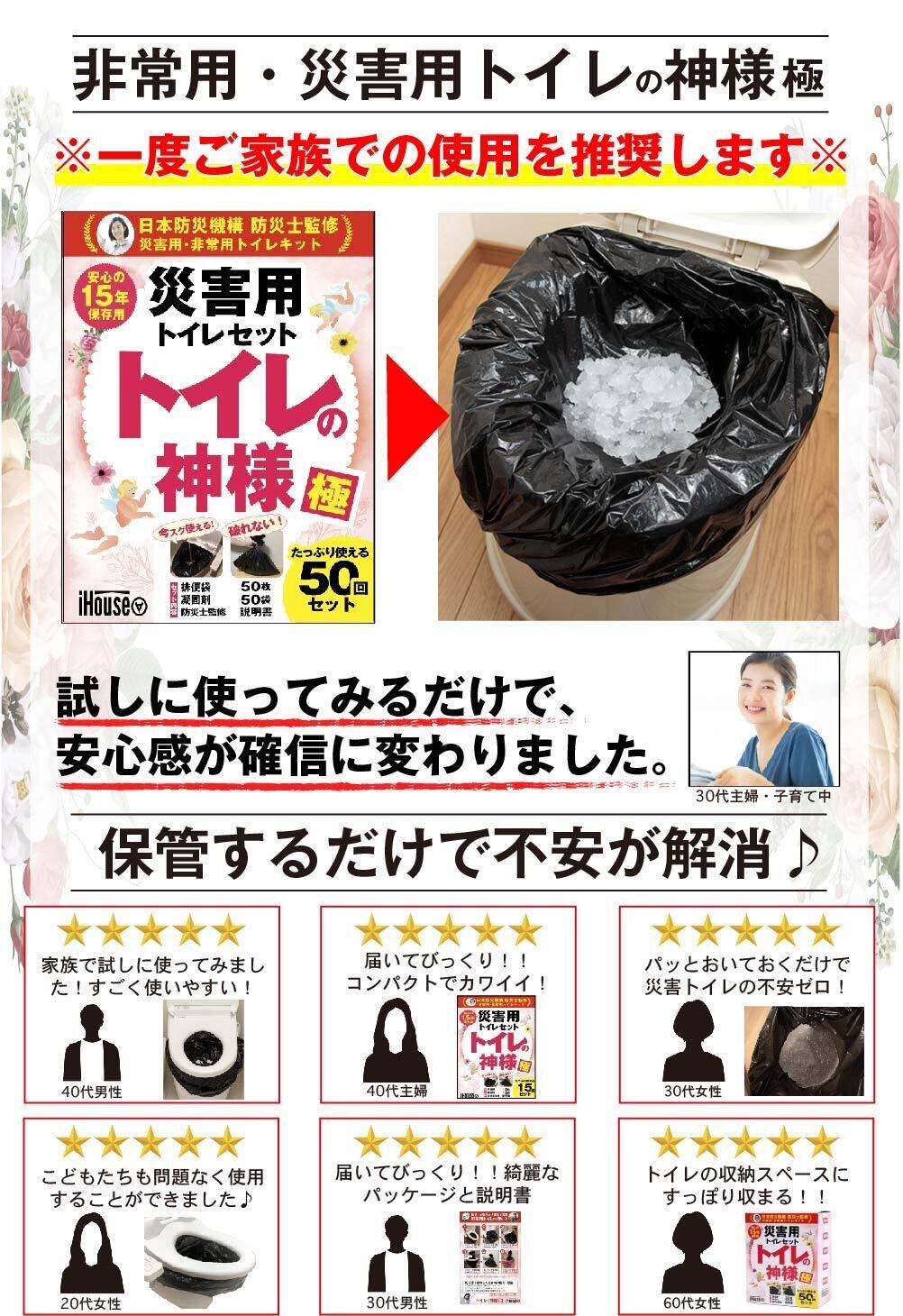 iHouse all トイレの神様 極 50回 2〜3人用 簡易トイレ 非常用トイレ 防災トイレ 災害用トイレ 携帯トイレ ポータブルトイレ portable toilet bowl トイレセット 災害グッズ 地震 断水 台風 介護 防災 災害用 日本製 15年保存