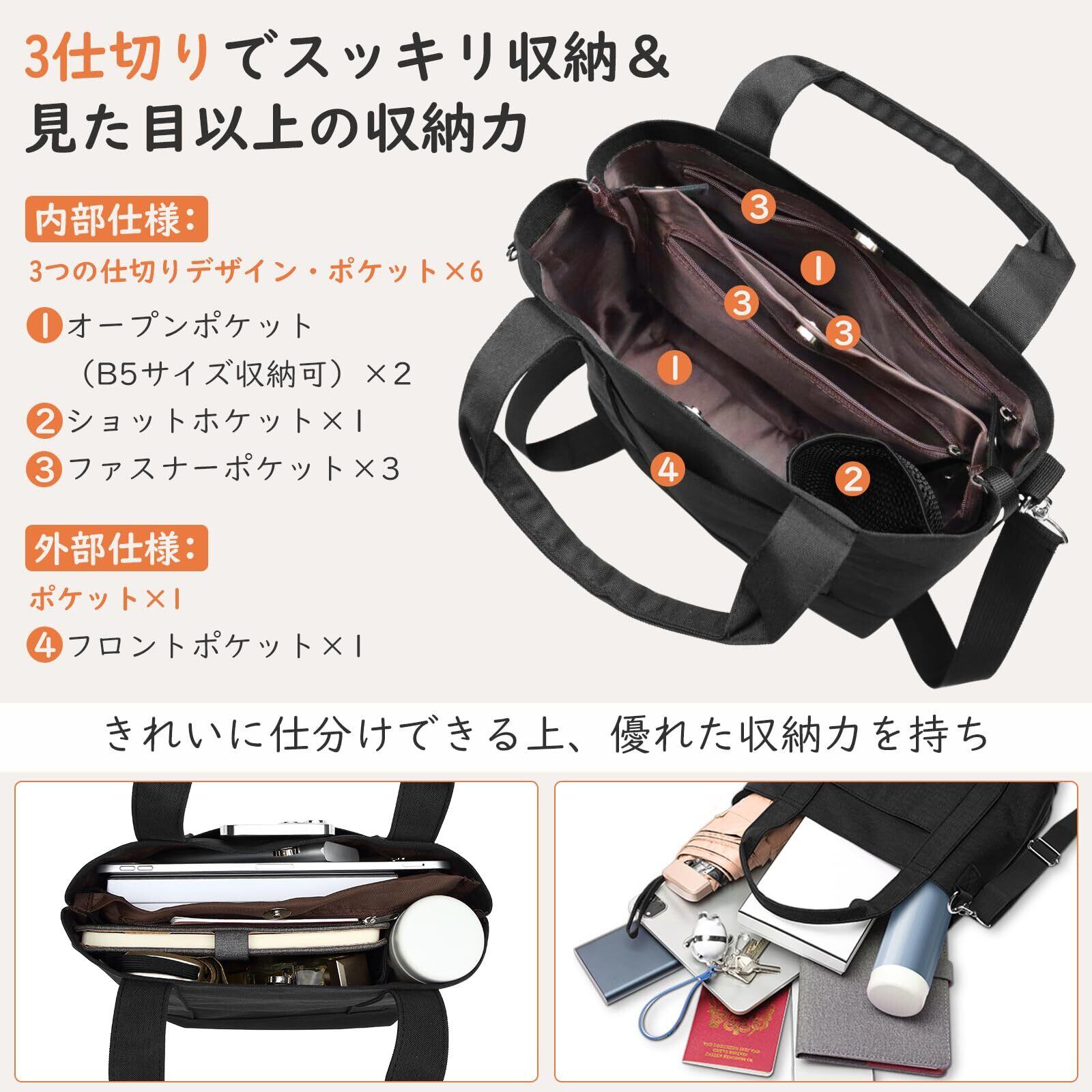 トートバッグ 小さめ 2way ショルダーバッグ レディース メンズ ミニトートバッグ 大容量 仕切り 斜めがけバッグ 肩掛けバッグ 手提げバッグ 通勤 仕事用バッグ ランチトート ランチバッグ 散歩 買い物 軽量 通学 自立 マザーズバッグ ブラック