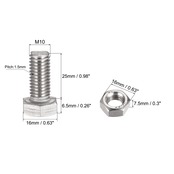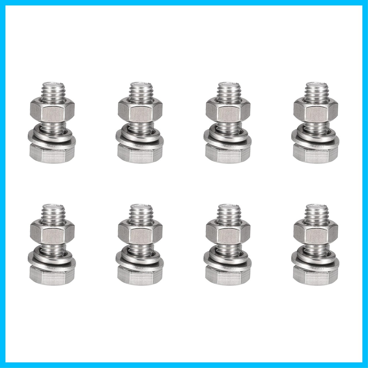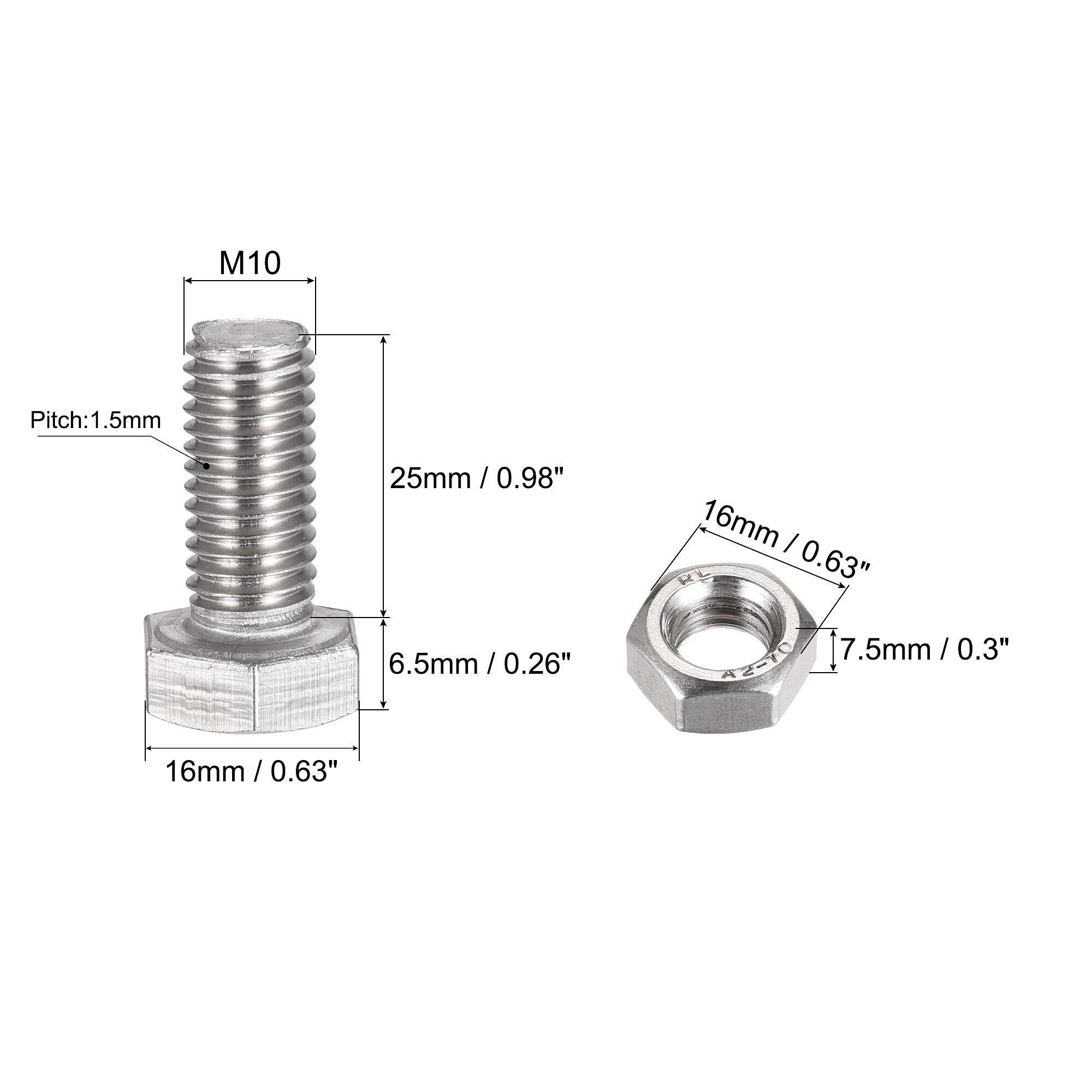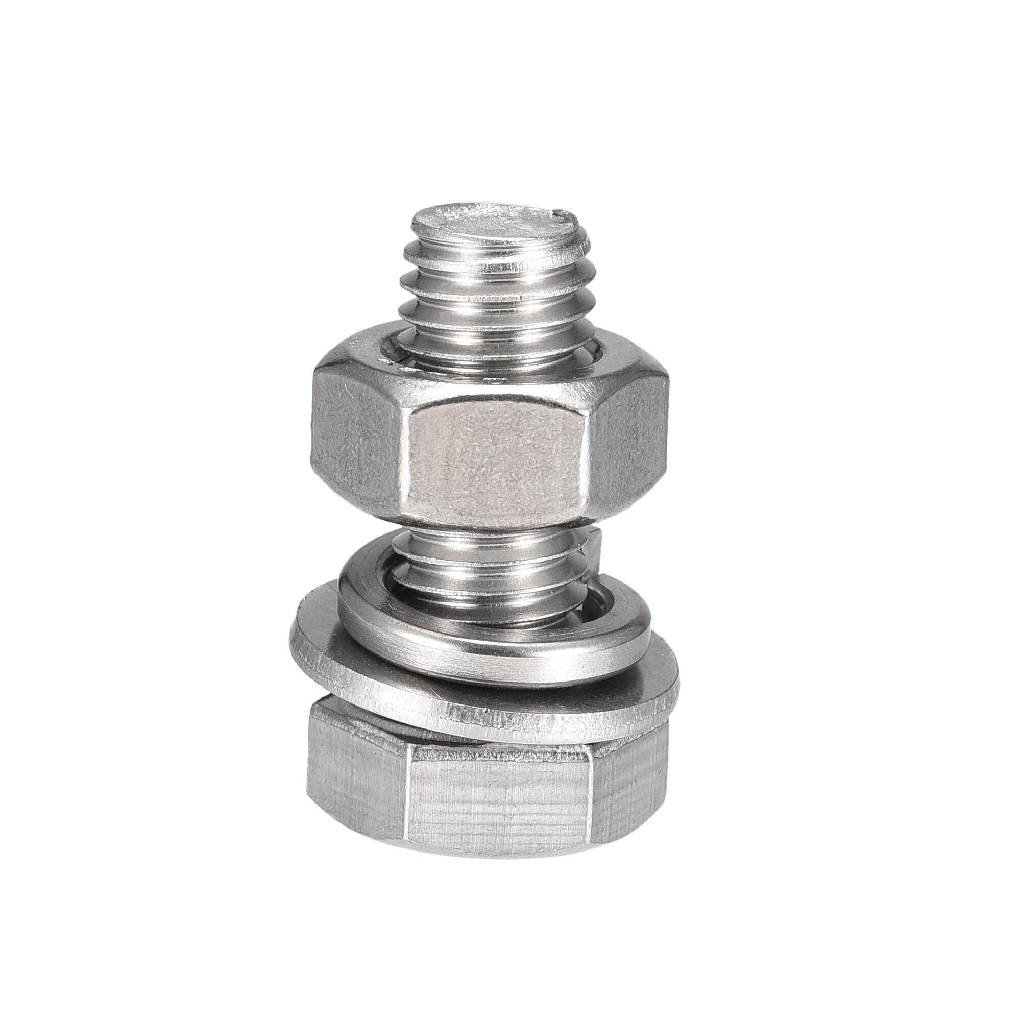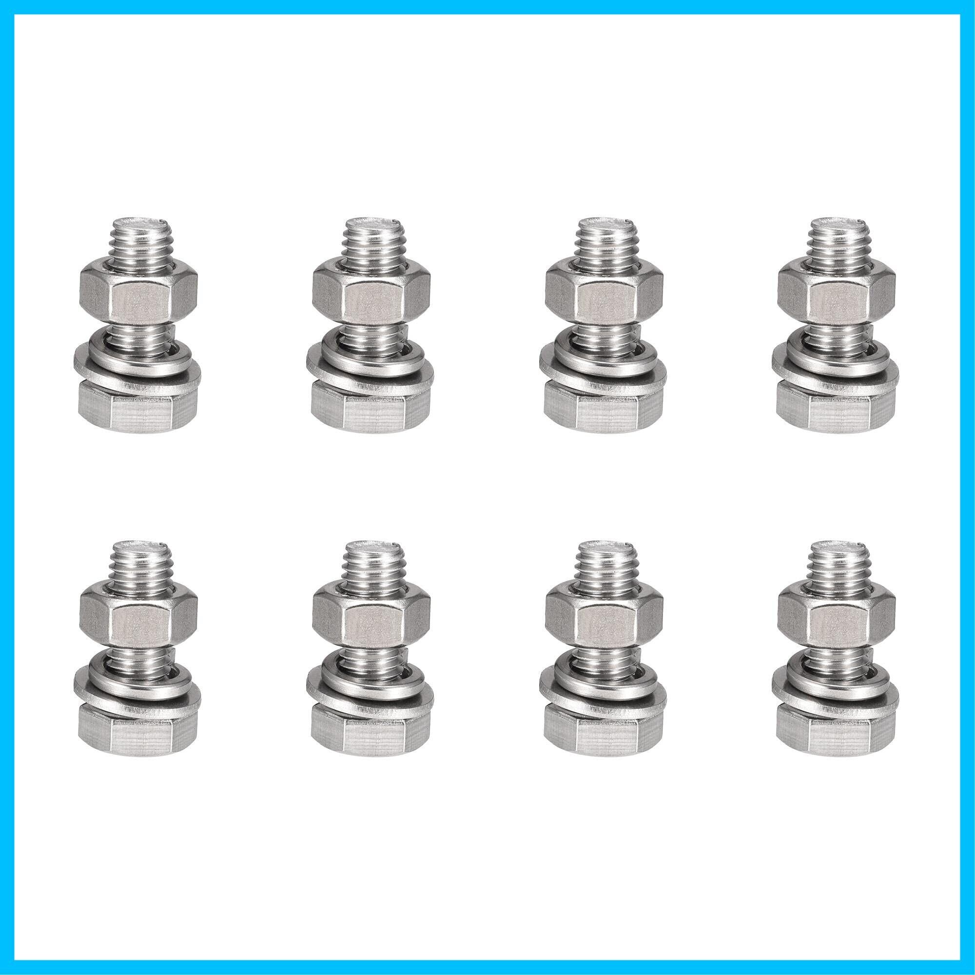 uxcell 六角頭ねじ ボルト、ナット、フラット&ロックワッシャーキット 304ステンレス鋼完全スレッド六角ボルト M10x25 mm 8セット