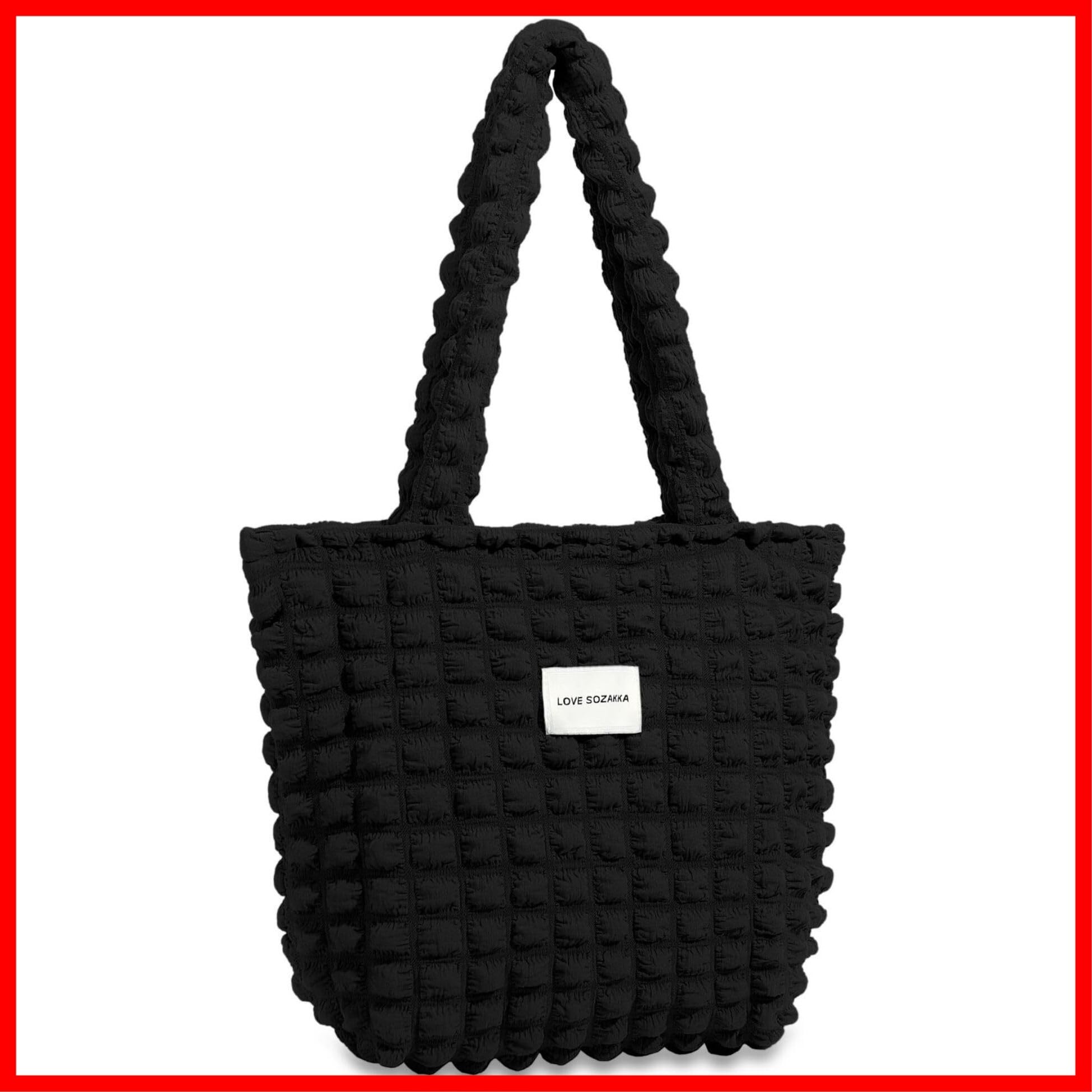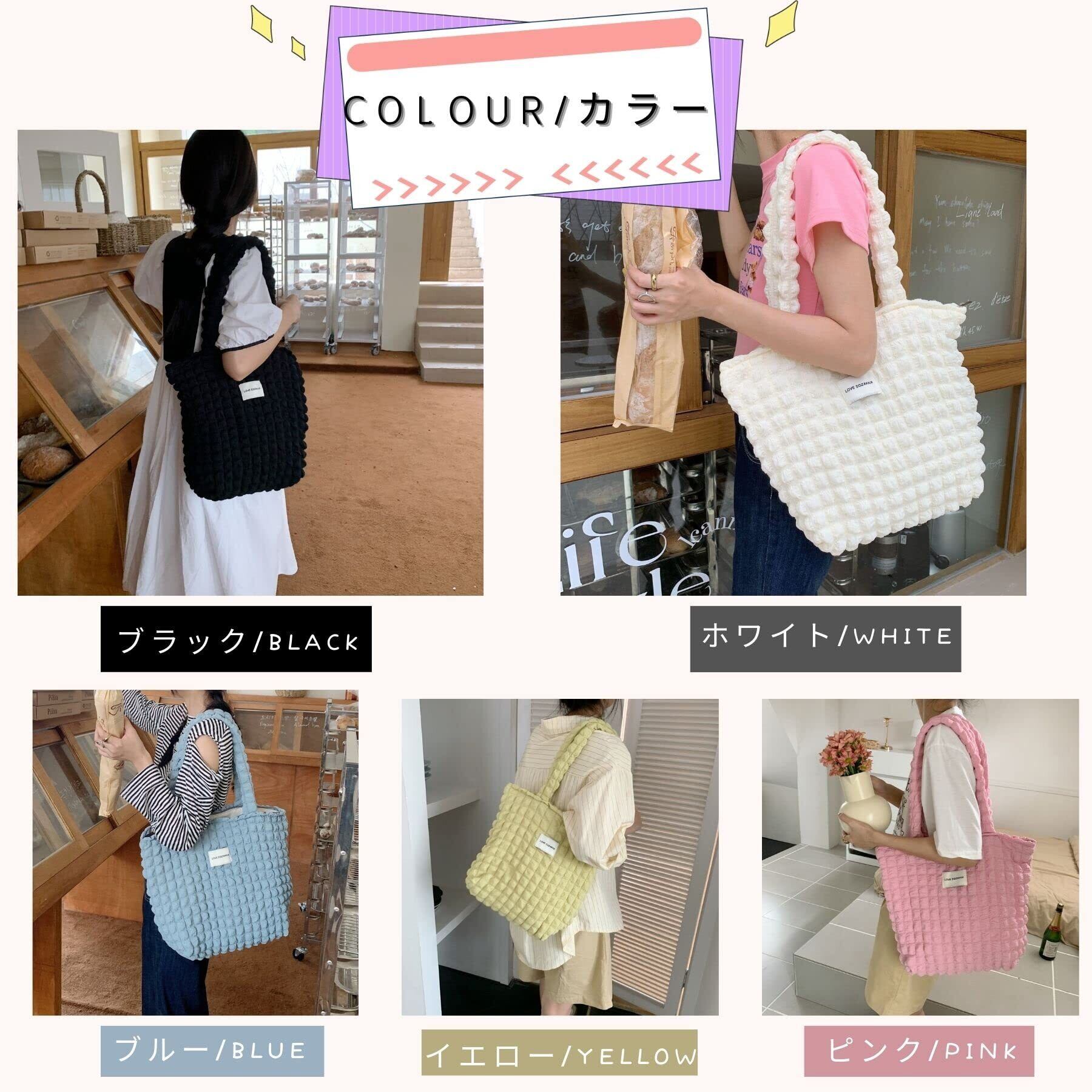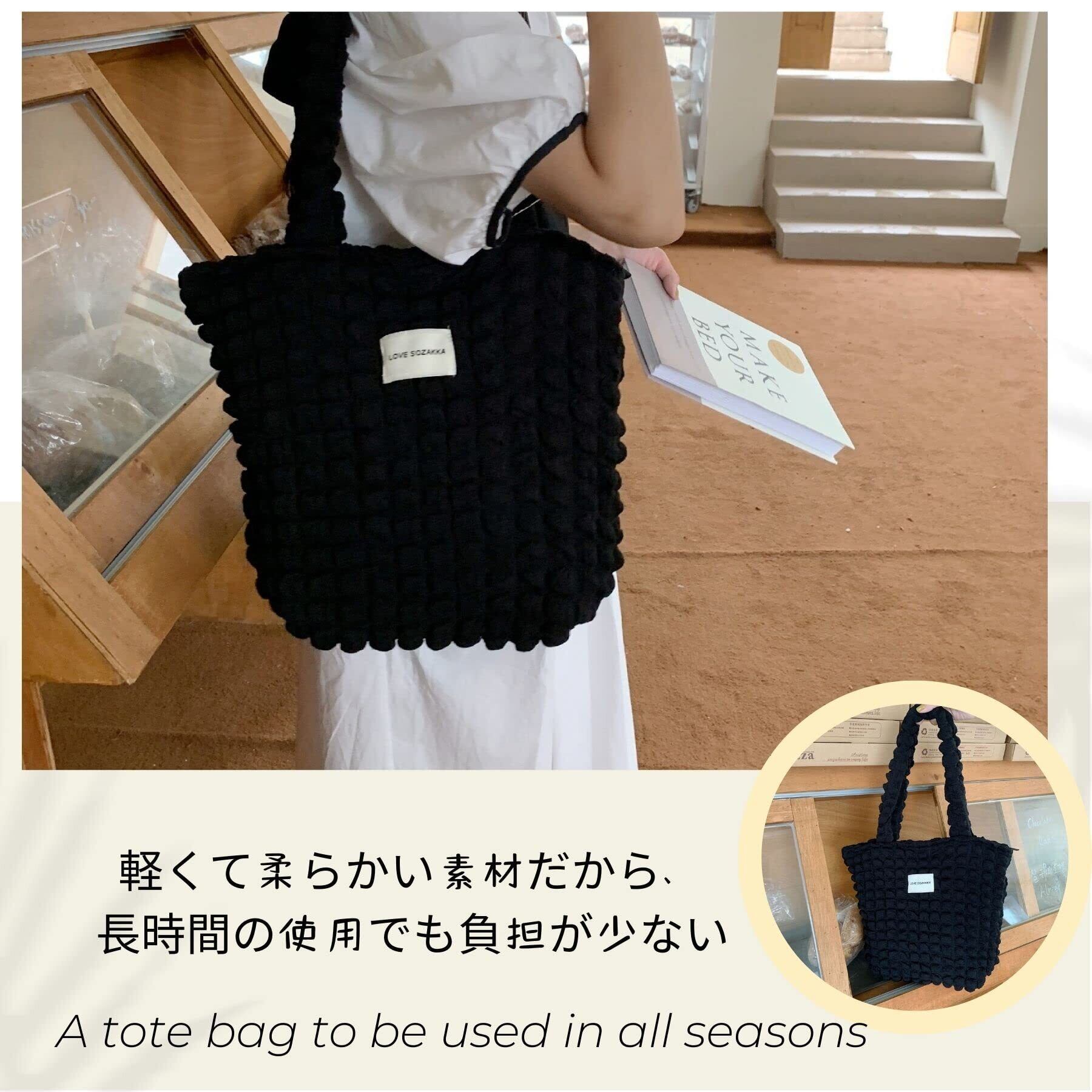 ベタリー トートバッグ キルティング ポップコーンバッグ レディース ふわふわ ポコポコ 可愛い 軽量 通勤 通学 肩掛け エコバッグ 手提げ A4 ファスナー付き 凸凹 学生 女の子 大容量 おしゃれ カバン 鞄 韓国 Bブラック