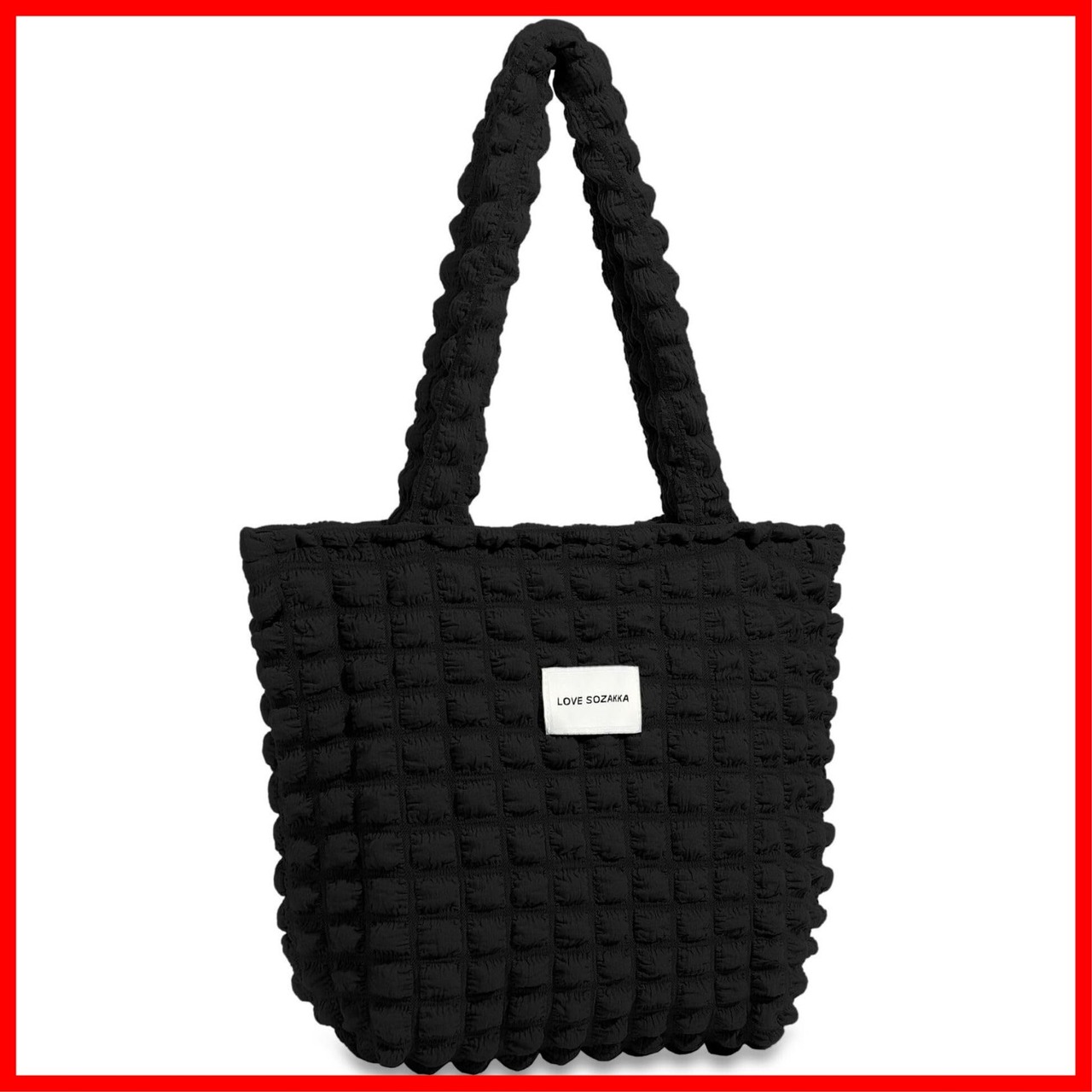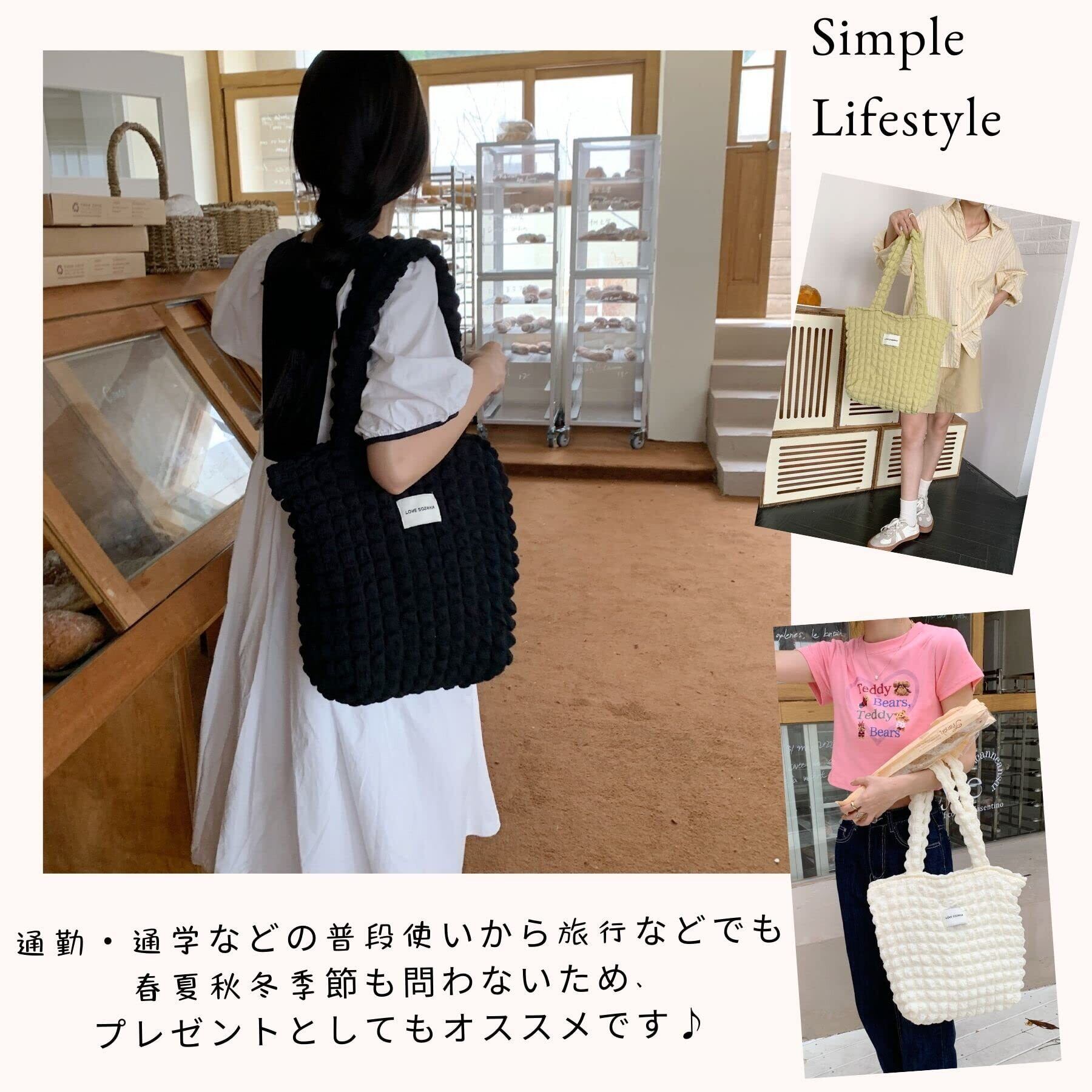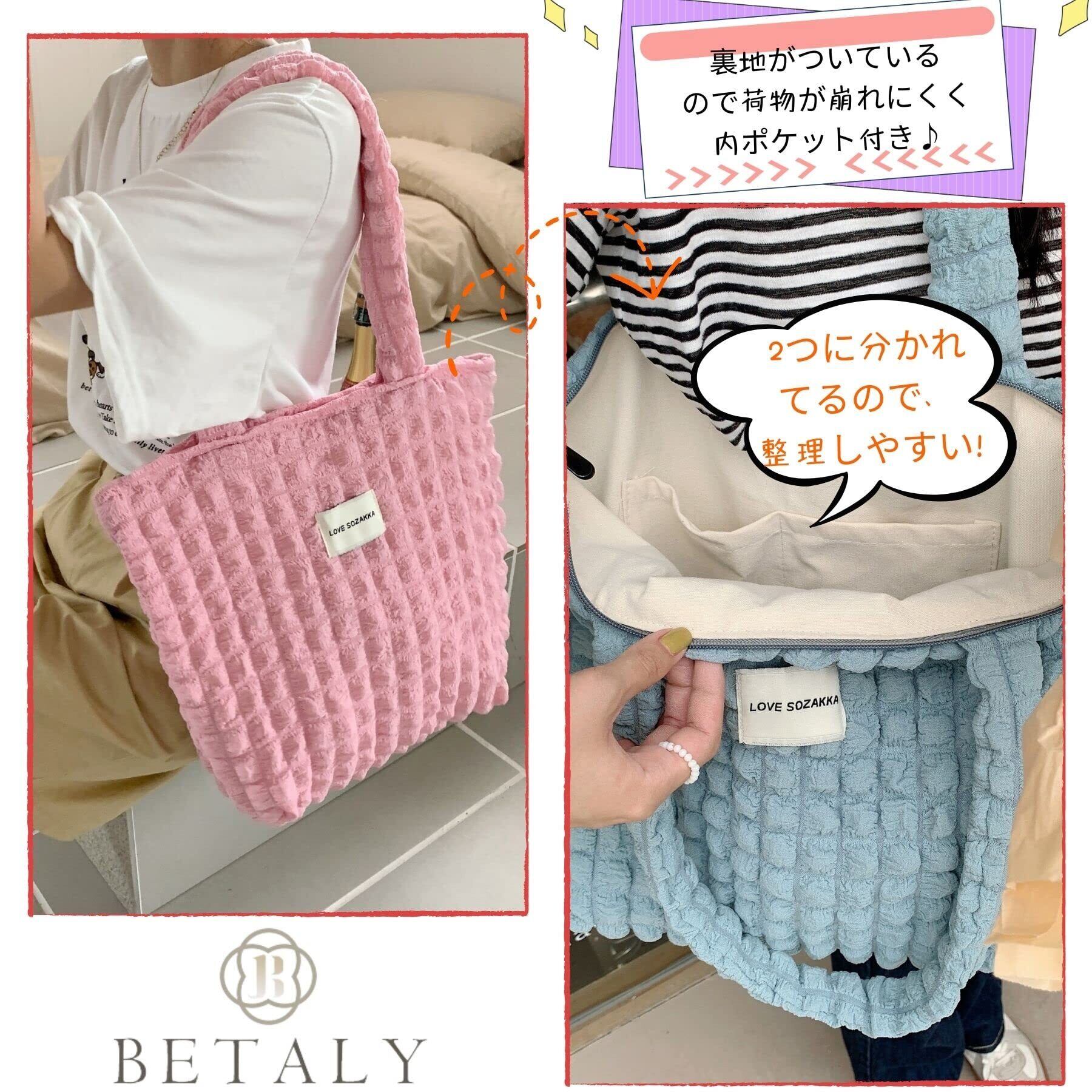ベタリー トートバッグ キルティング ポップコーンバッグ レディース ふわふわ ポコポコ 可愛い 軽量 通勤 通学 肩掛け エコバッグ 手提げ A4 ファスナー付き 凸凹 学生 女の子 大容量 おしゃれ カバン 鞄 韓国 Bブラック