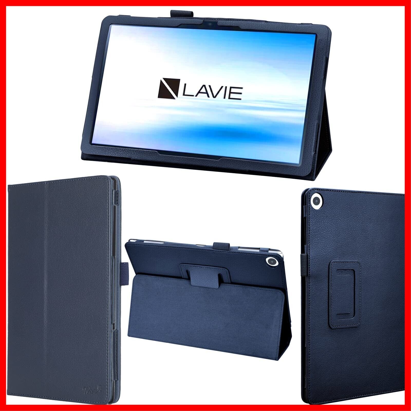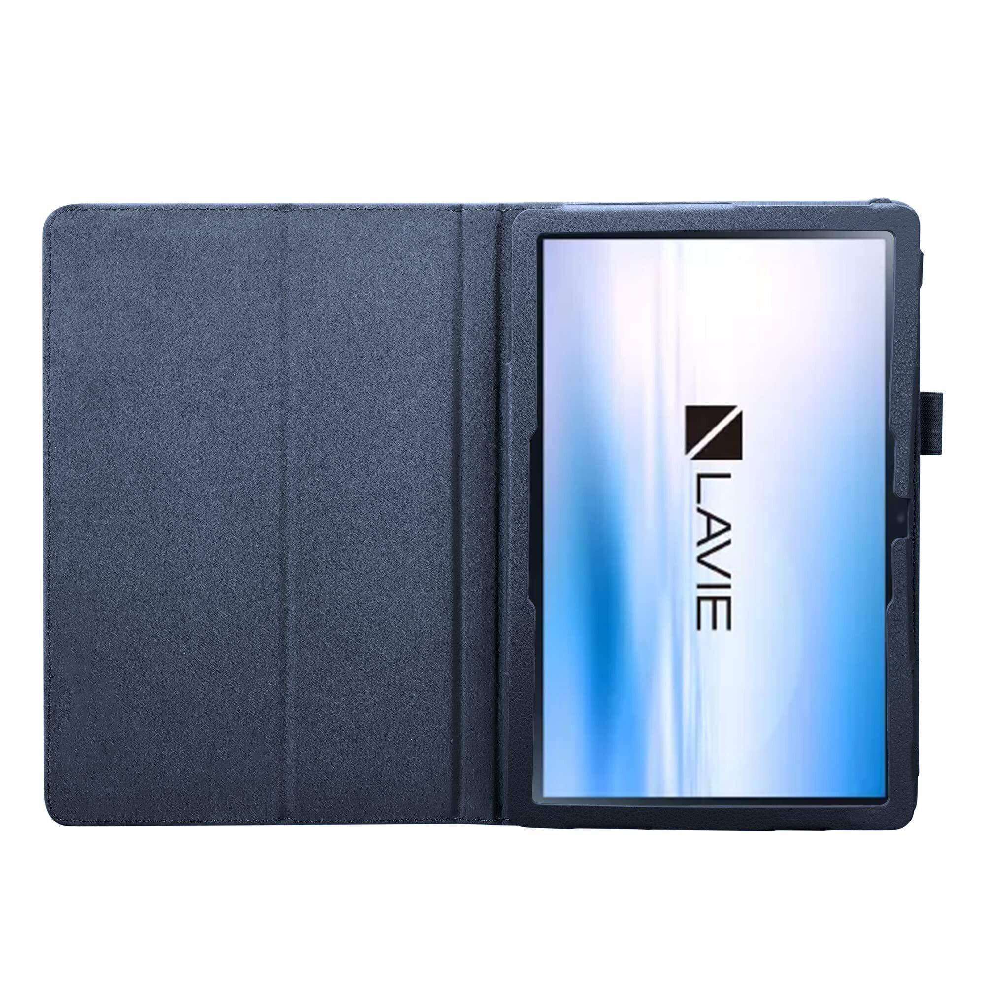 wisers LAVIE Tab T10 docomo T10d タブレットケース 10.1インチ 対応 (タッチペン 保護フィルム 付) T1055 / EAS PC-T1055EAS PC-T1055ETS PUレザー素材 ダークブルー