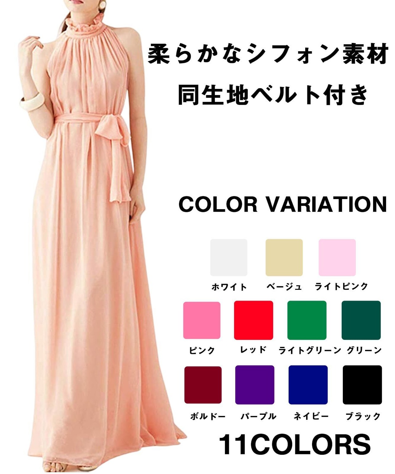 マキシ丈 シフォン ワンピース ロング ドレス パーティー 結婚式 二次会 発表会 ホルターネック プリーツ ノースリーブ マキシ サマーワンピース まきし リゾート ゆったり マーメイドドレス レース ダンス フレア フリル ウェディング フォーマル おおきいサイズ おでかけ シンプル バレエ ブライダル ミセス レトロ 衣装 レディース 大人 ホワイト 3S-B29-WH
