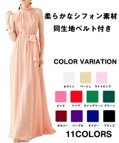 特別な日の一着に。ふわっとエレガントさが漂う、大人女性に似合うマキシ丈のパーティードレスが登場しました。 首元からのたっぷり入ったドレープで優雅な雰囲気を、背中のリボンで上品な可愛らしさをプラス。 足元まですっぽり隠れるロング丈でも、軽さのあるシフォン素材で柔らかさがあるので重く見えません。