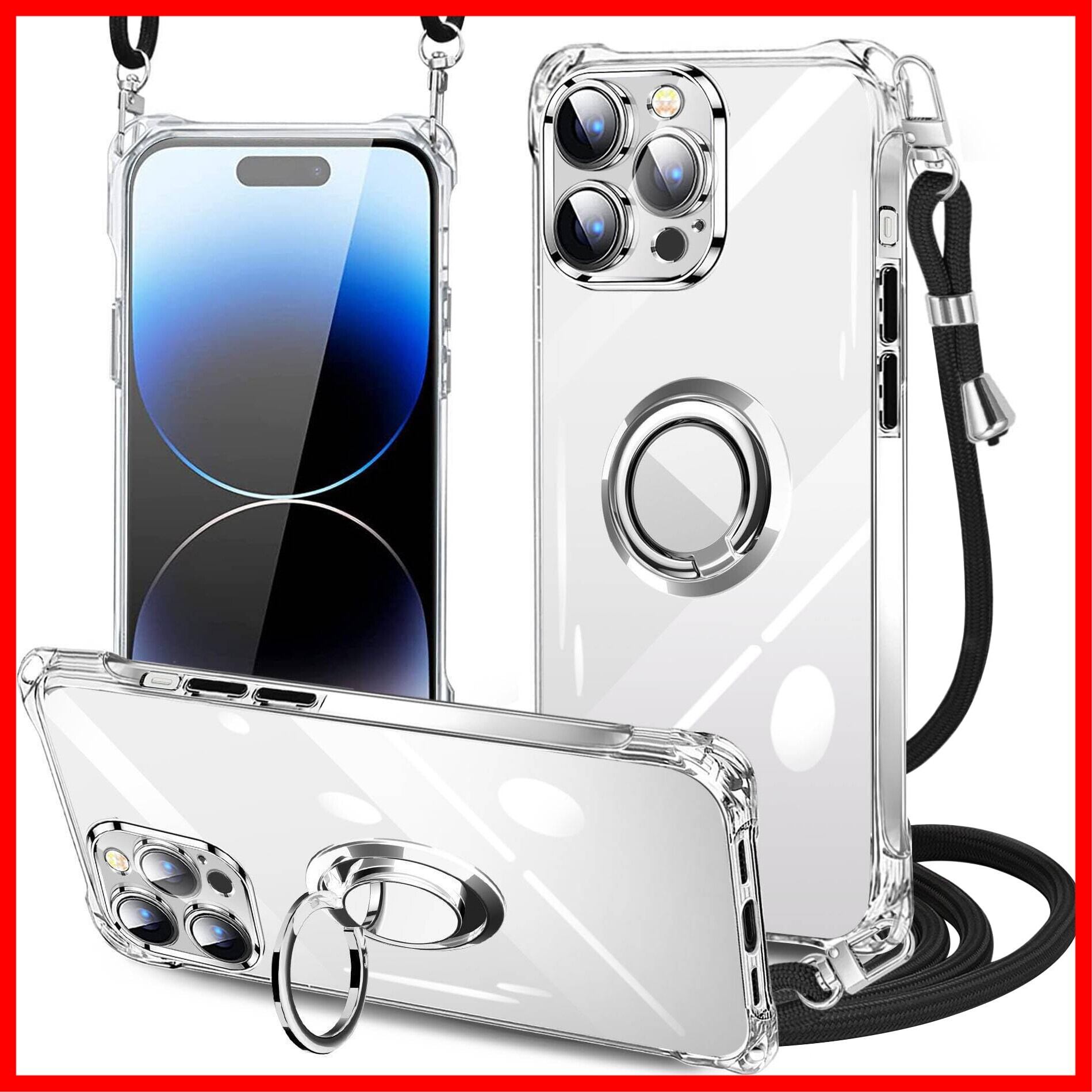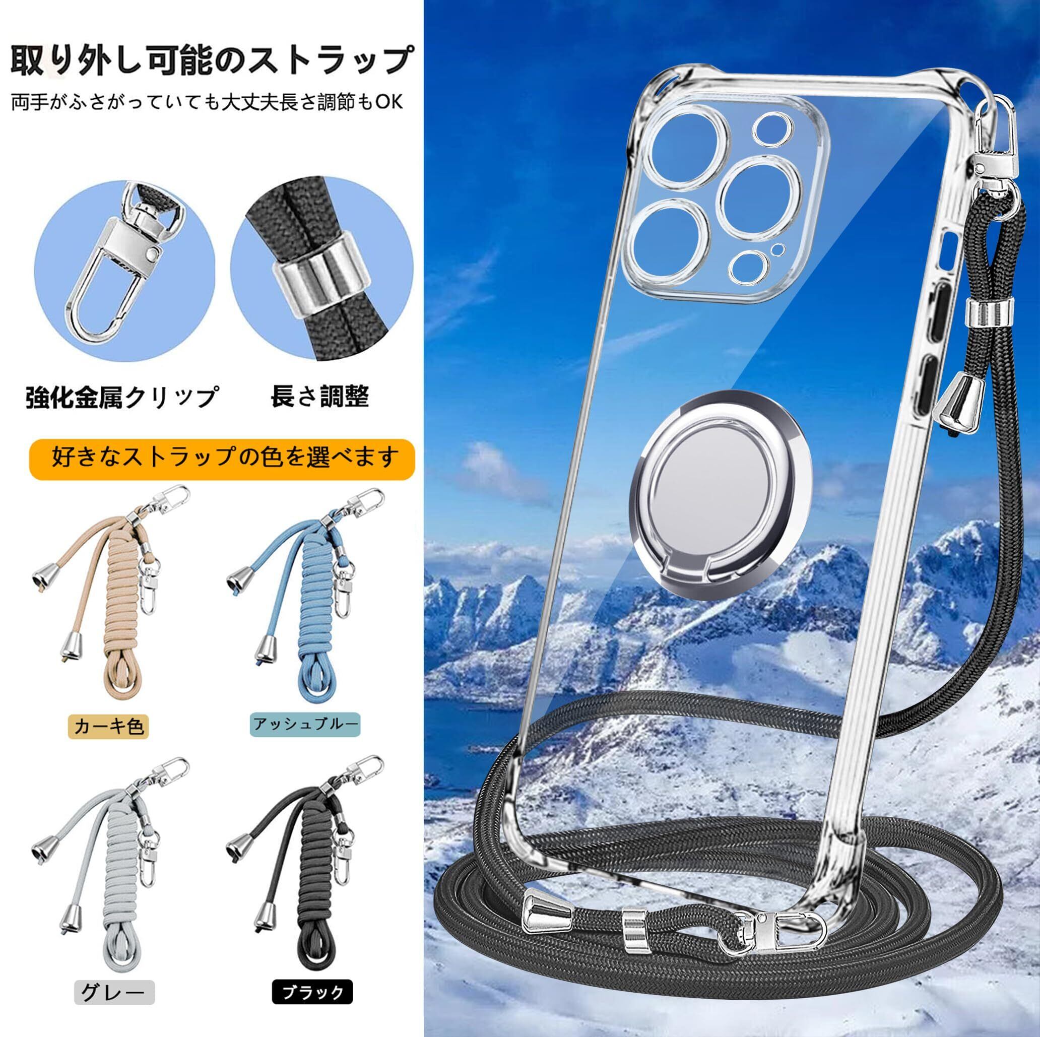 PAILAIMEN iPhone 14 pro ケース クリア ネック リング付き ショルダー 耐衝撃 対応 アイフォン14pro スマホケース 肩掛け 斜めかけ 縄掛けケース 透明 TPU ストラップ付き 携帯ケース 薄型 軽量 紐付き 斜めがけ 織りストラップ付き ネックストラップ ショルダー ケース 肩掛け 縦/横 2WAY 調節可能なショルダー カバー バンパー(縄掛け-ブラック)