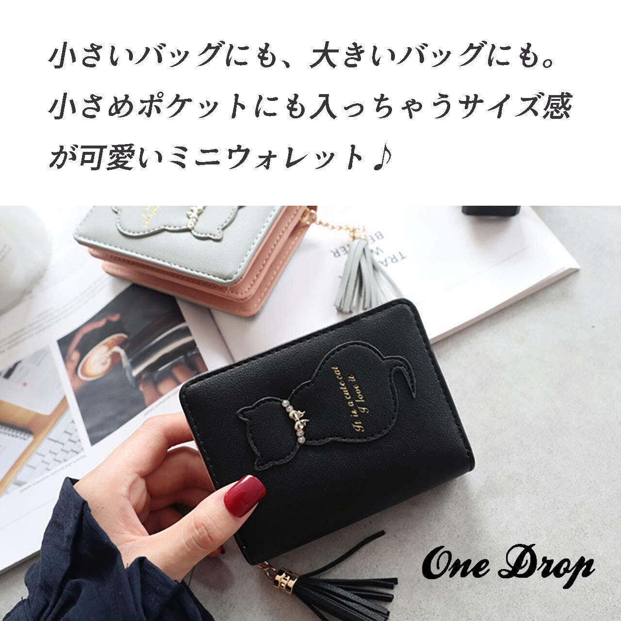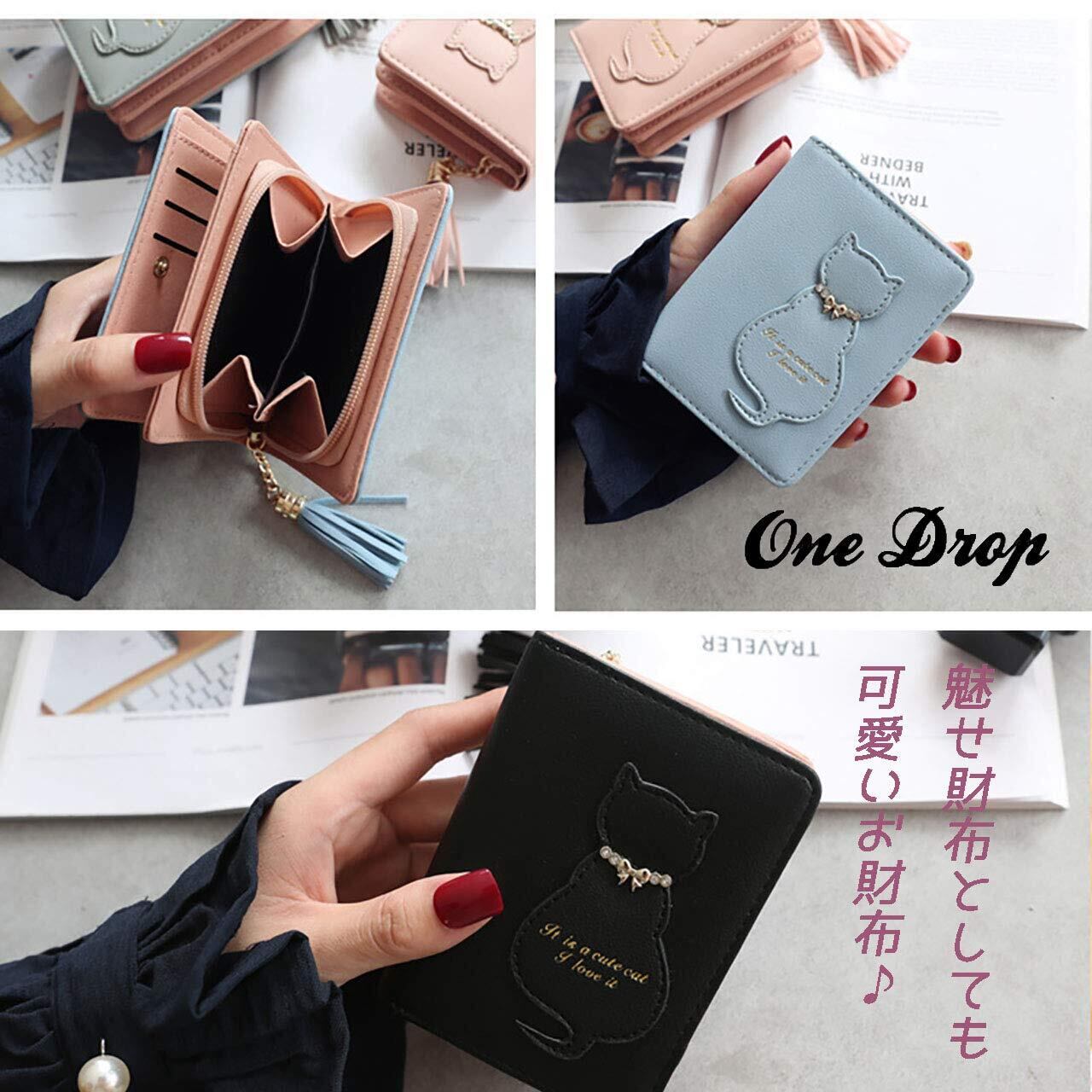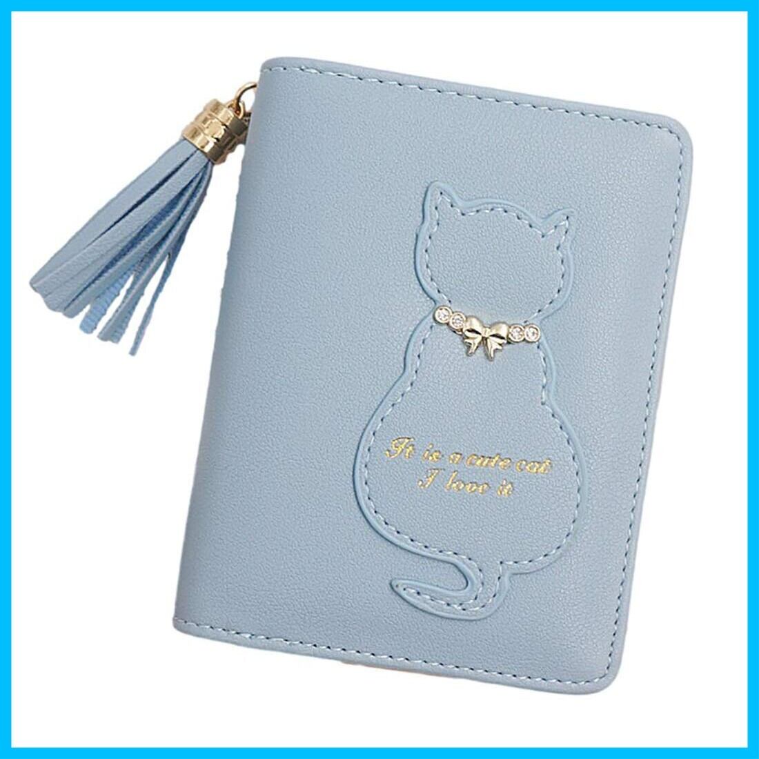二つ折り 財布 レディース かわいい ネコ プレゼント カード 小銭 入れ ウォレット タッセル 付き ミニ 飾り チャーム 付 ミニ お祝い 小銭 入れ カワイイ お洒落 サイフ さいふ バレンタイン 猫 コンパクト ホワイトデー ガール 札 水色 ぶるー blue (ブルー)