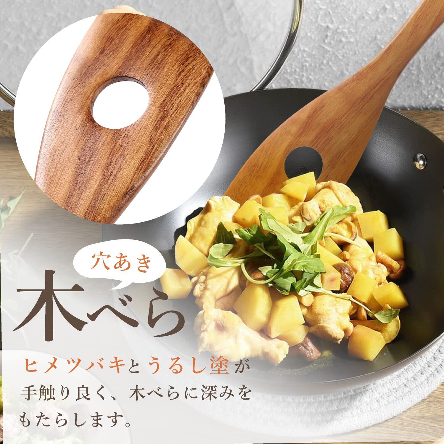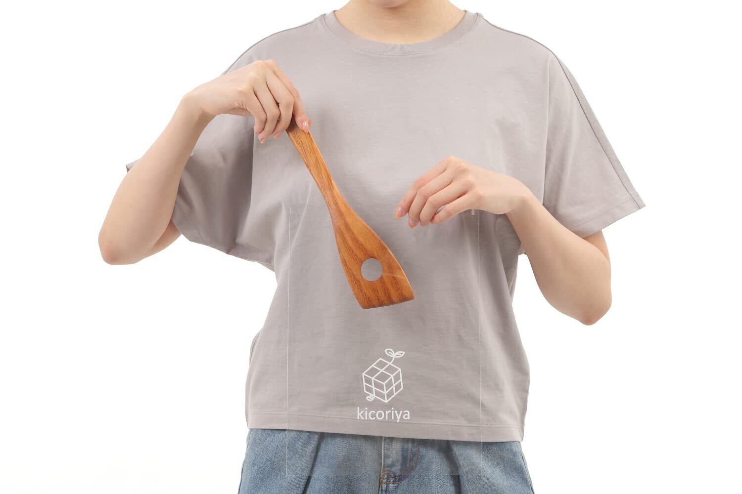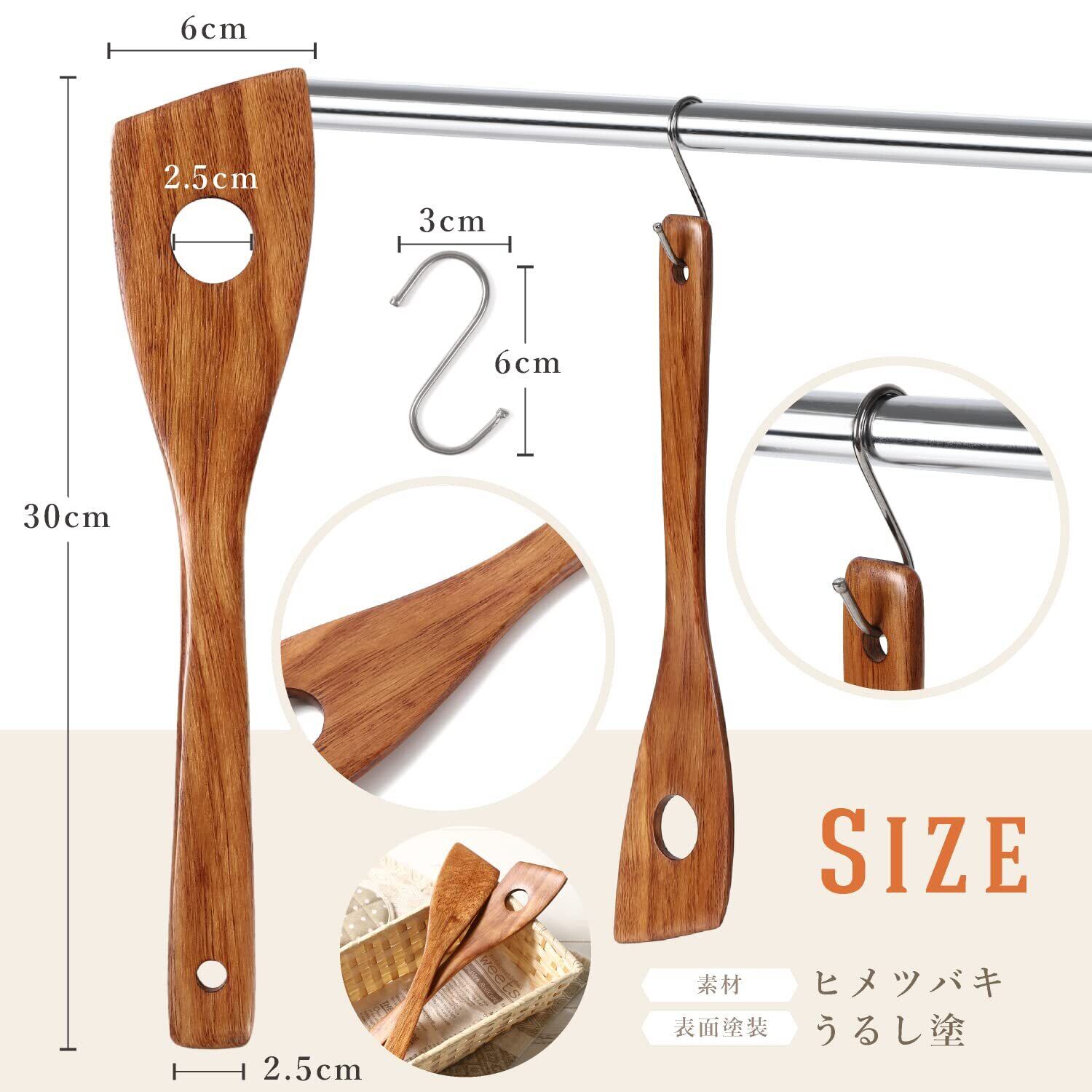 kicoriya 木べら 木ベラ へら ヘラ 穴あき 料理用 調理用 保管に便利なS字フック付き 穴 茶
