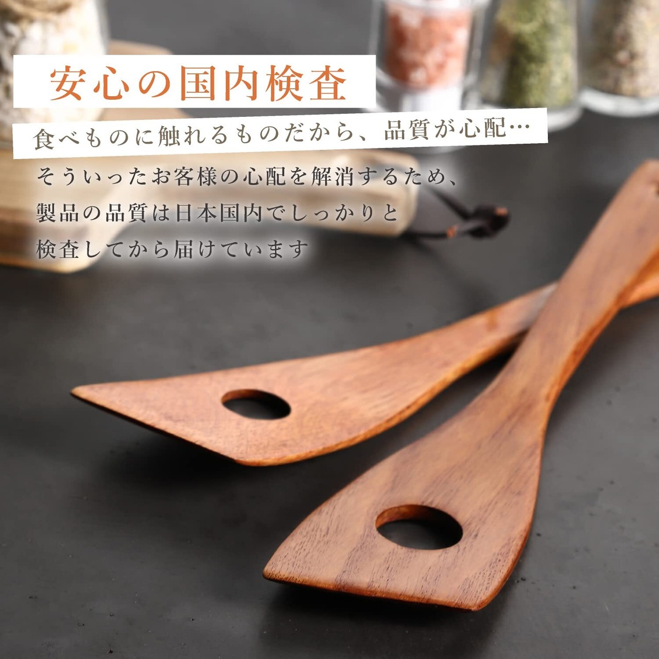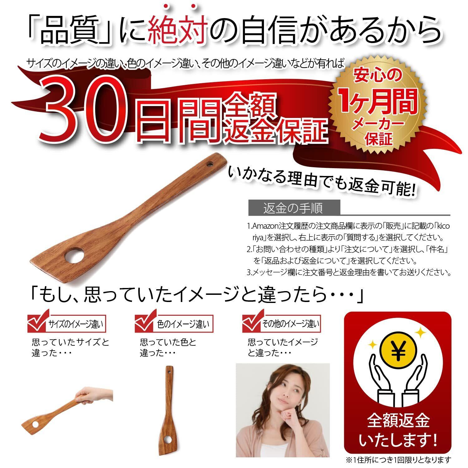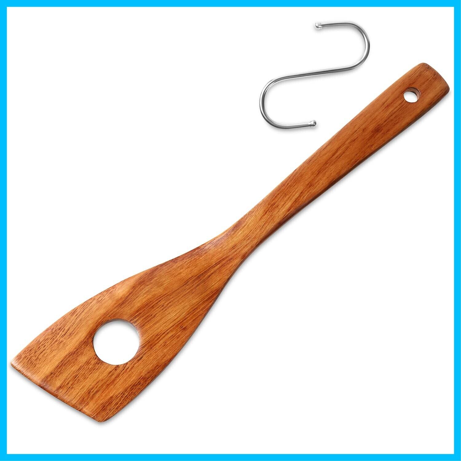 kicoriya 木べら 木ベラ へら ヘラ 穴あき 料理用 調理用 保管に便利なS字フック付き 穴 茶