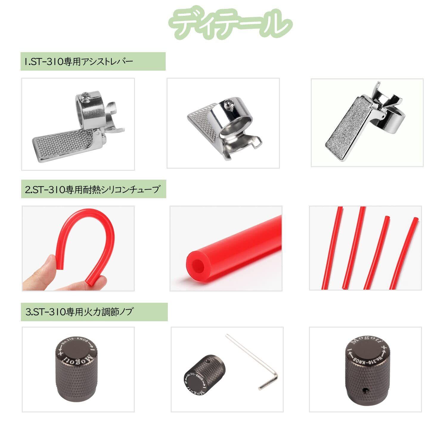ST-310レギュレーターストーブ専用点火アシストレバー 点火用スイッチ st-310用耐熱シリコンチューブ st-310火力調節用ノブ付き アシスト三点セット ST-310用アクセサリー 簡単に点火できる シングルバーナー