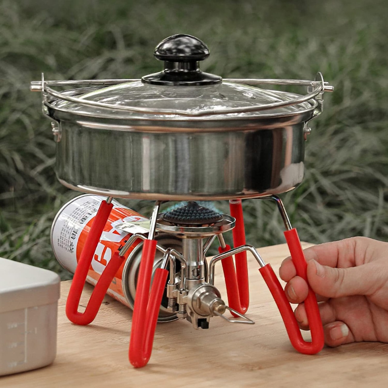 【火力調節ノブ】st310 をよく使う人はわかりますが、弱火にしようとつまみを最小にしておくと気が付いたら火が消えてしまっていた、といった事もレギュレーターストーブを使っている時はありがちです。専用ノブを使うと、火力の調節は便利になり、弱火に調節しても中火に調節しても自在に回せます。