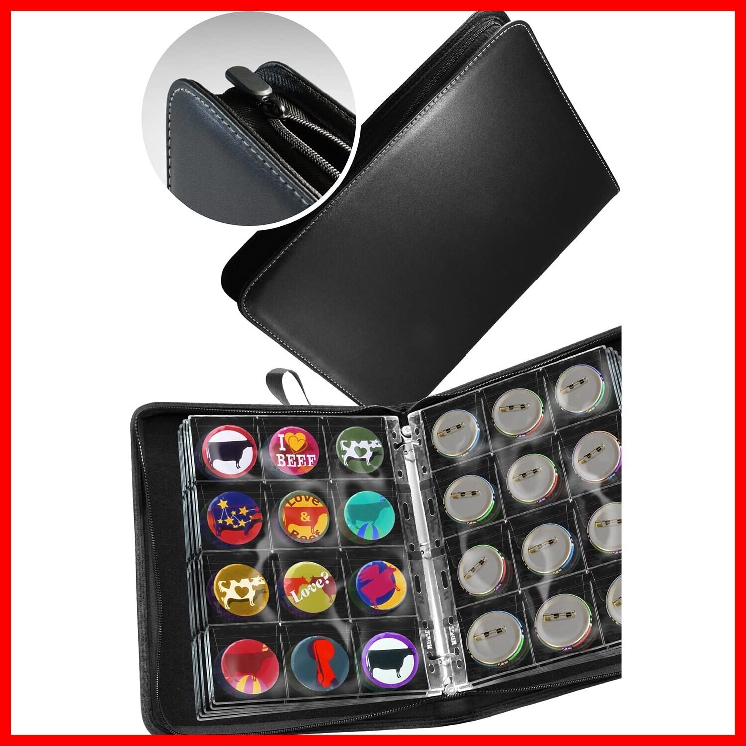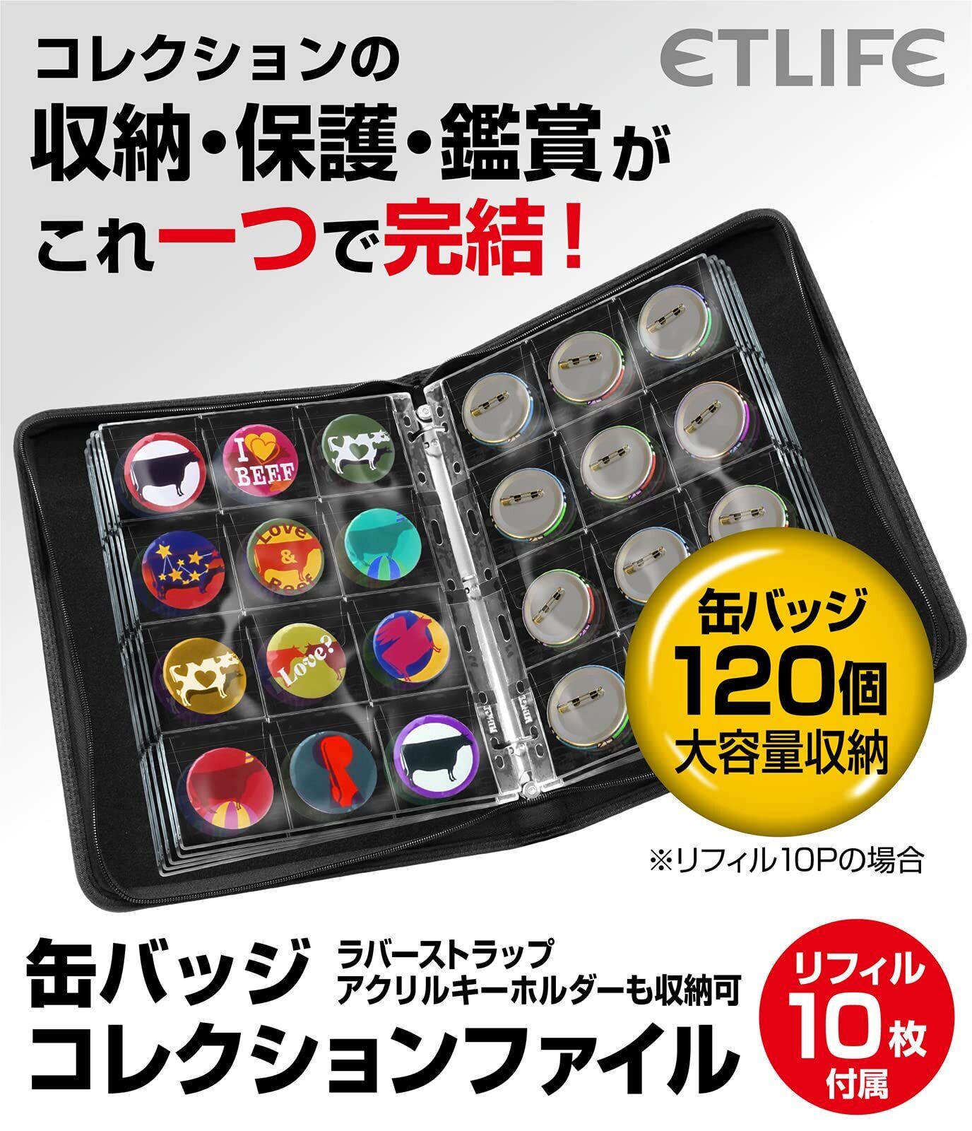 ETLIFE 缶バッジ 収納 57mm PUレザー コレクション ファイル コインアルバム (ブラック)