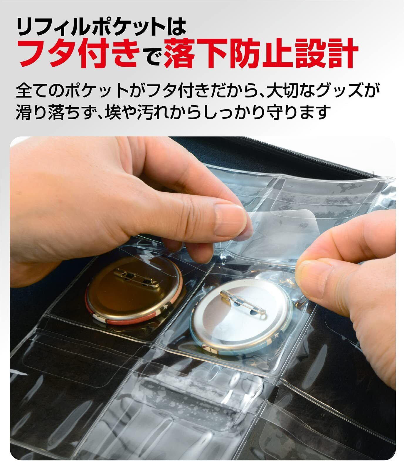 【リフィルポケットは落下防止設計】 全てのポケットは中のグッズが滑り落ちないように、落下防止用の舌が付いた専用設計となっております。