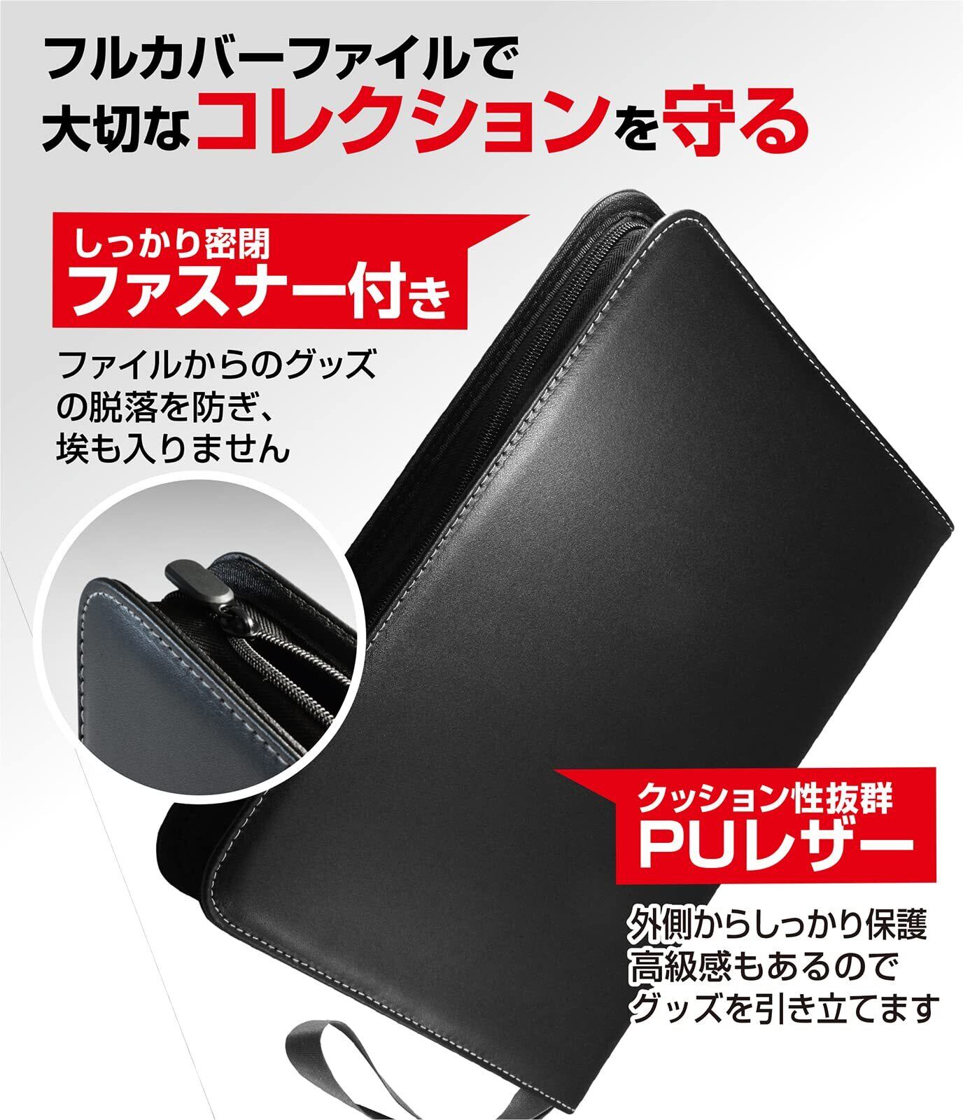 【大切なグッズの収納 保護 鑑賞に、これ1つ】 高品質PUレザーのフルカバータイプのコレクションファイルで、缶バッジ、ラバーストラップ、アクリルキーホルダーなど様々なグッズを収納&鑑賞できます。大切なコレクションを「汚れ」「しわ」「折れ」「キズ」から守り、いつまでも綺麗な状態で鑑賞することができます。