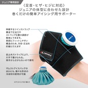 ジュニアのサイズに合わせた設計の、腕や足の冷却・圧迫に適したアイシング用ラップ。仮どめストラップを採用し、片手でも装着できます。