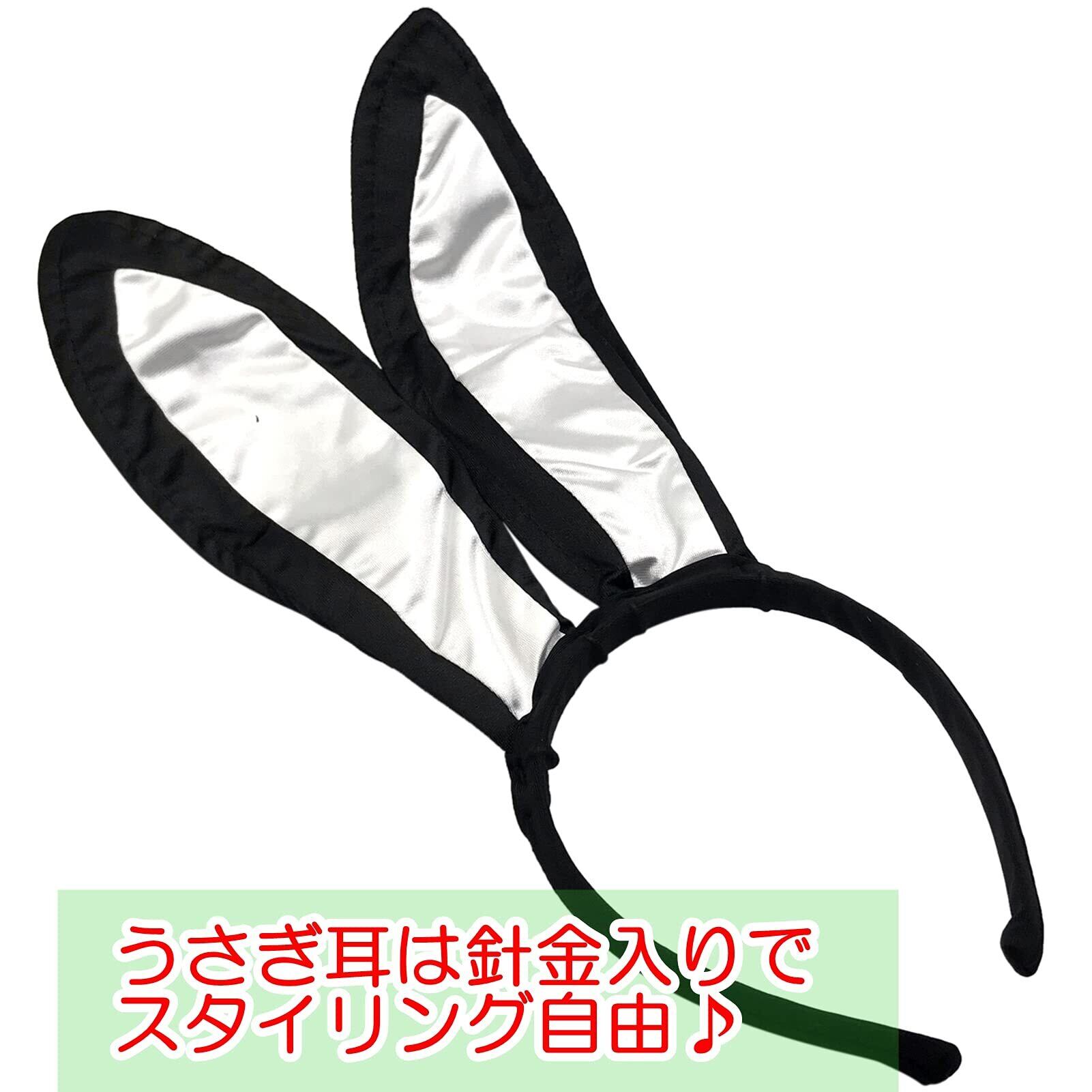 セット内容:ワンピース、兎耳、付け襟(ネクタイ大と小) サイズ・M 総丈 82 / ウエスト 74~84 / 肩幅 36 ・L 総丈 84 / ウエスト 76~86 / 肩幅 37 ・XL 総丈 86 / ウエスト 79~89 / 肩幅 38 単位 cm