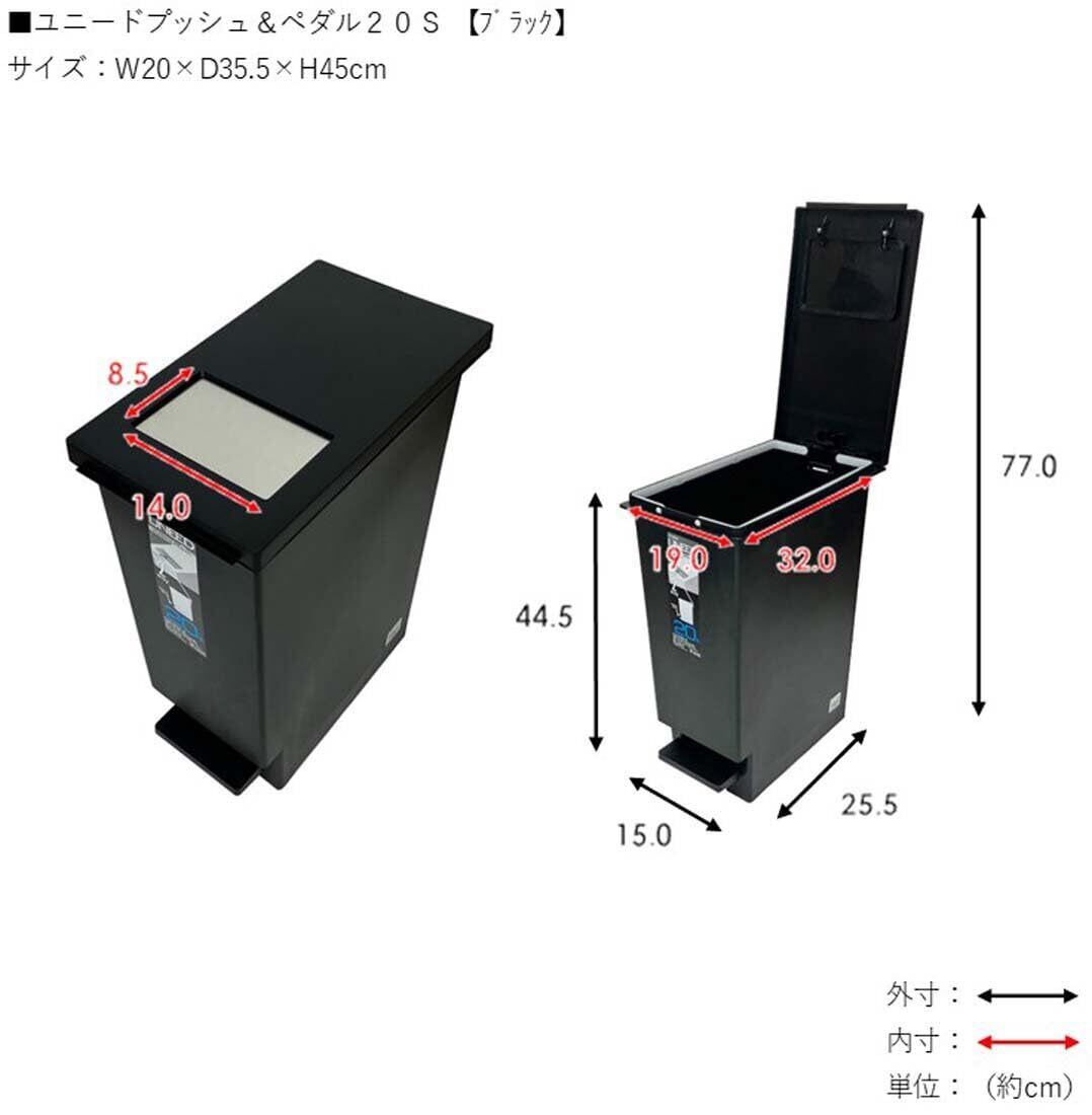 新輝合成(Shinki Gosei) トンボ ユニード ゴミ箱 蓋を開けずにごみを捨てられる プッシュタイプ 軽いペダルでサッと開く 20リットル ブラック 幅20×奥行35.5×高さ45cm 蓋付き 20S 日本製