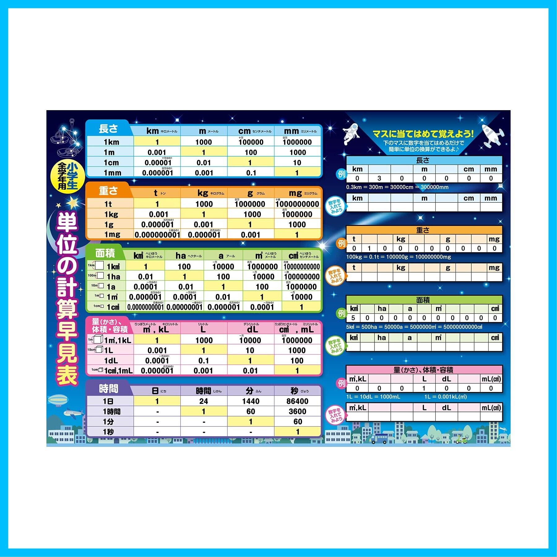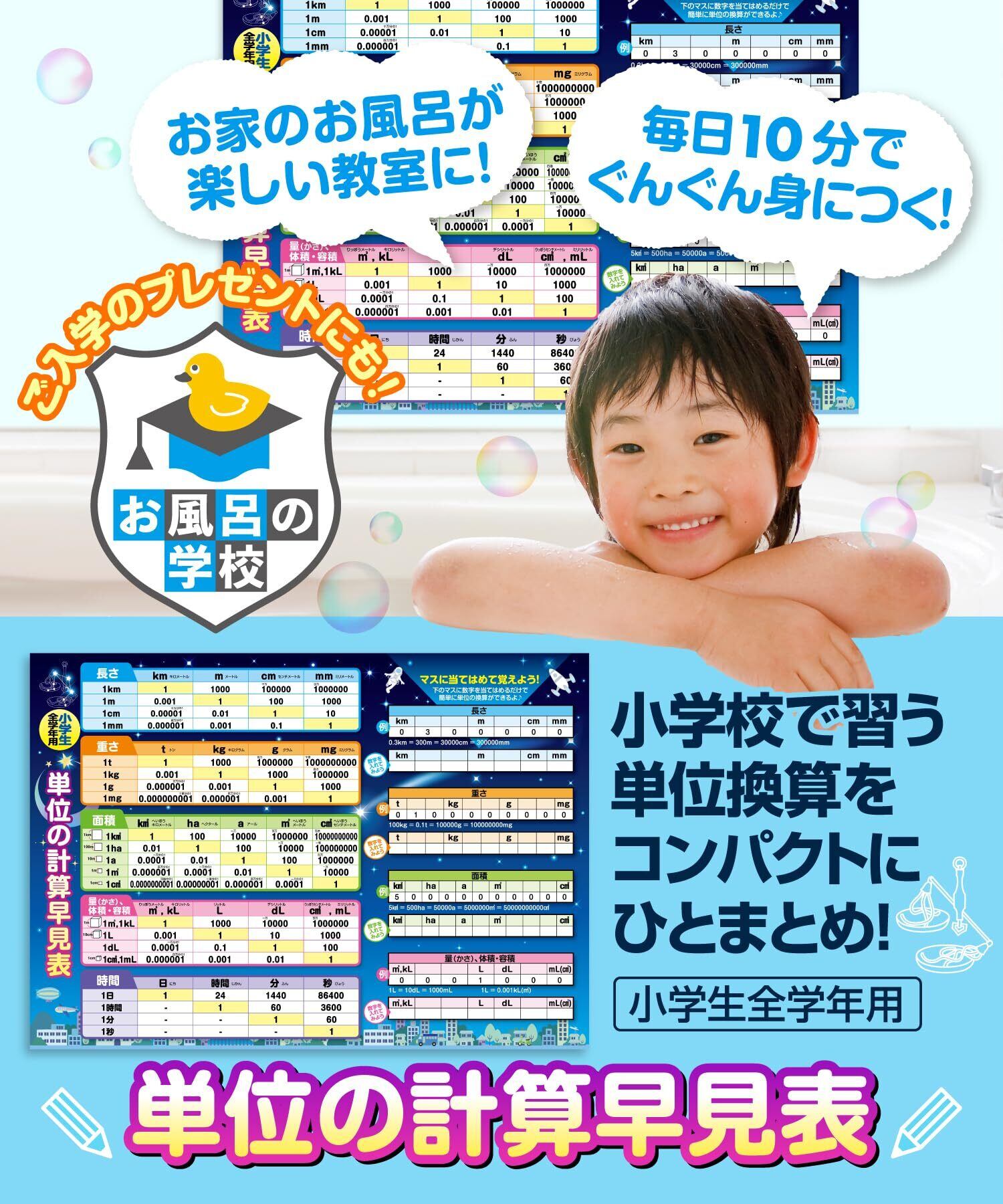 お風呂の学校 単位の計算早見表 お風呂ポスター 日本製 星空デザイン B3サイズ 中学受験 算数 単位換算 小学生全学年用 知育 学習 防水
