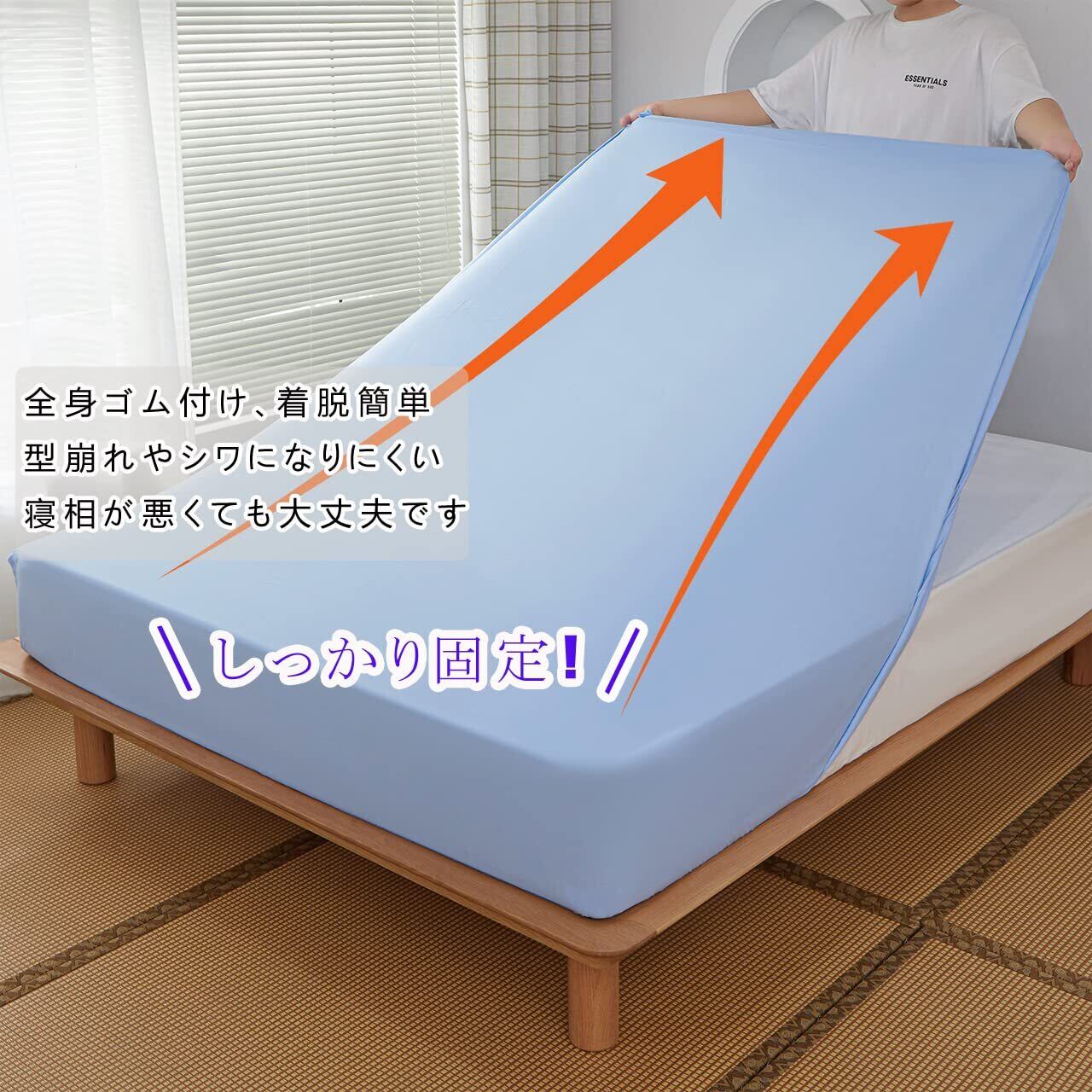 ボックスシーツ 吸水速乾 マットレスカバー ベッドシーツ シーツ ベッドカバー 柔らかな触感 吸汗 マチ部分約30cm 着脱簡単 通気性 丸洗い可能 快眠 (ブルー, セミダブル・120X200X30cm)