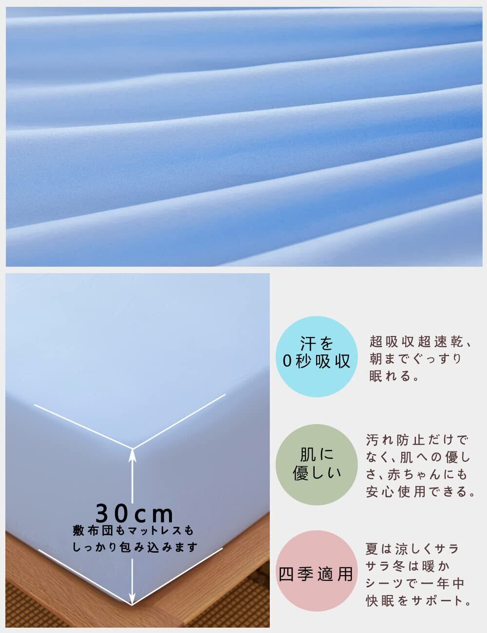 【超吸収超速乾】夏は涼しくサラサラ、冬は暖かシーツで一年中快眠をサポート。汚れ防止だけでなく、肌への優しさ、快眠のために機能する快眠シーツです。1年中のオールシーズンにお使いいただけます。