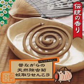 特徴:天然成分100%。煙のやさしい蚊取り線香です。