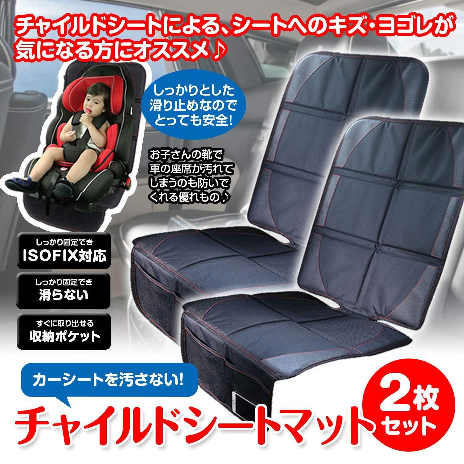 チャイルドシート 保護マット 2枚セット 車 座席保護 ISOFIX対応 ズレ防止 収納ポケット付き ジュニア キズ・ヨゴレから守る K-SHE05-SET1