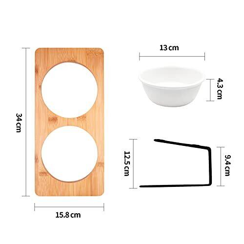 FUKUMARU 犬猫用スタンド付きセラミック食器、15度の角度つき、ペット用竹製スタンド付き食器、猫、犬、ペット、猫用、犬用、ペット用、食器、皿、陶器製、食器スタンド、餌入れ