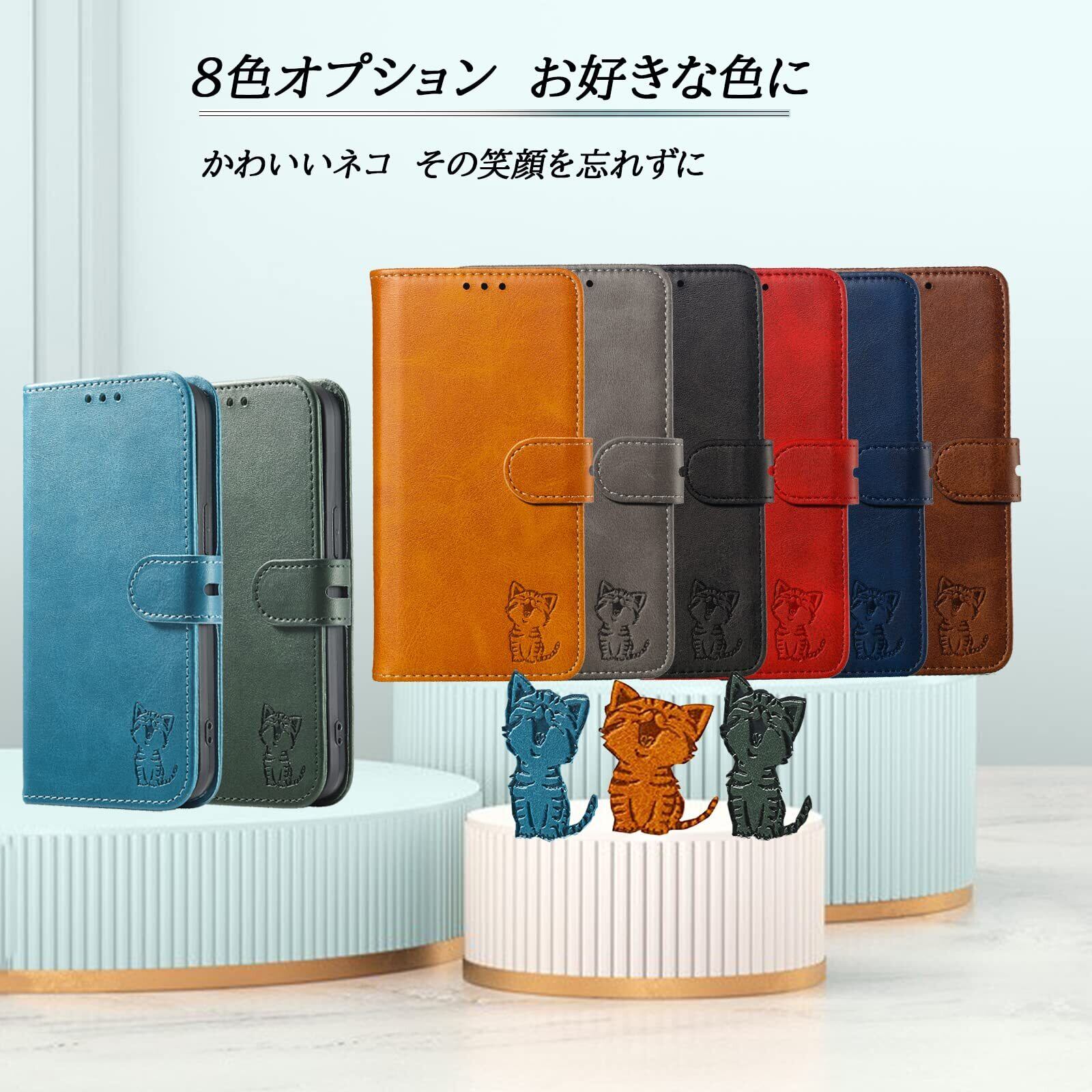 ❸スマイル猫ちゃんのデザインと上質な素材:型押しの可愛い猫のモチーフと上品なレザーの組み合わせるケースであり、高級感ある色合いでちょっぴり大人なスマホケース。裏側ケースはソフトのtpuで仕上げられて、着脱も便利です。ストラップも付いて、日常性型にもっと便利になります。