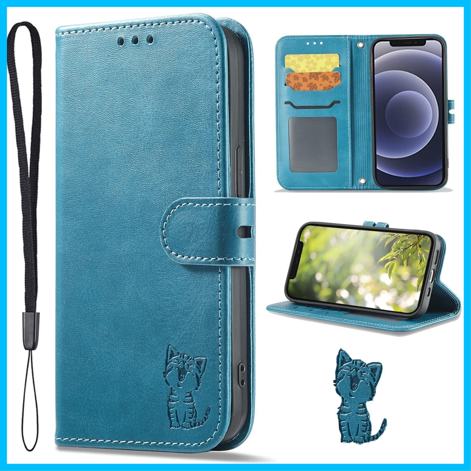 iPhone13 ケース手帳型 iPhone 13 手帳 カバー iPhone13 手帳型ケース iPhone 13 ケース あいふぉん13 手帳型ケース アイフォン13 ケース 手帳型 スマホケース 可愛い キャラクター 携帯ケース スマイル 笑顔猫ちゃん 保護ケース 猫柄 動物 アニマル どうぶつ 柄 携帯カバー ねこ ネコ PUレザー ストラップ付き カード収納 ベルトマグネット式 スタンド機能 かわいい 薄型 防水 ノート型 おしゃれ 耐衝撃 男女兼用 黒色 (iPhone 13 6.1 inch対応) ターコイズ