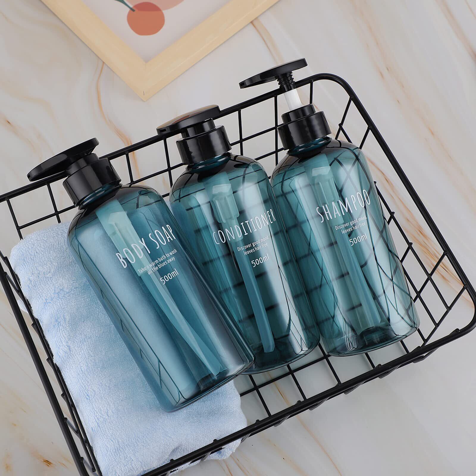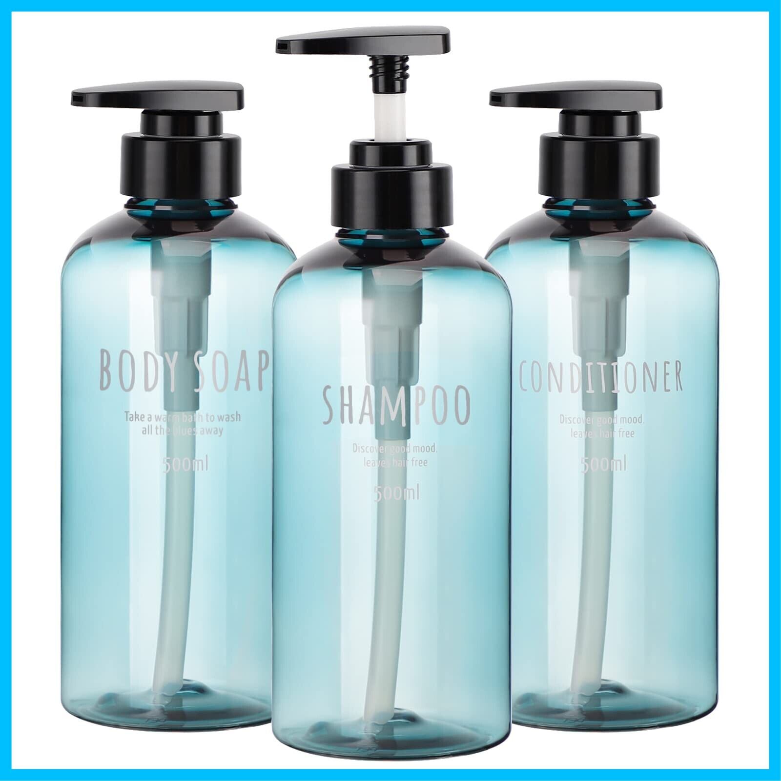 Segbeauty シャンプーボトル ディスペンサー 水色 3本セット 500ml 大容量 ブラック 丸形 漏れ防止 詰め替えボトル おしゃれ 浴室 洗面所