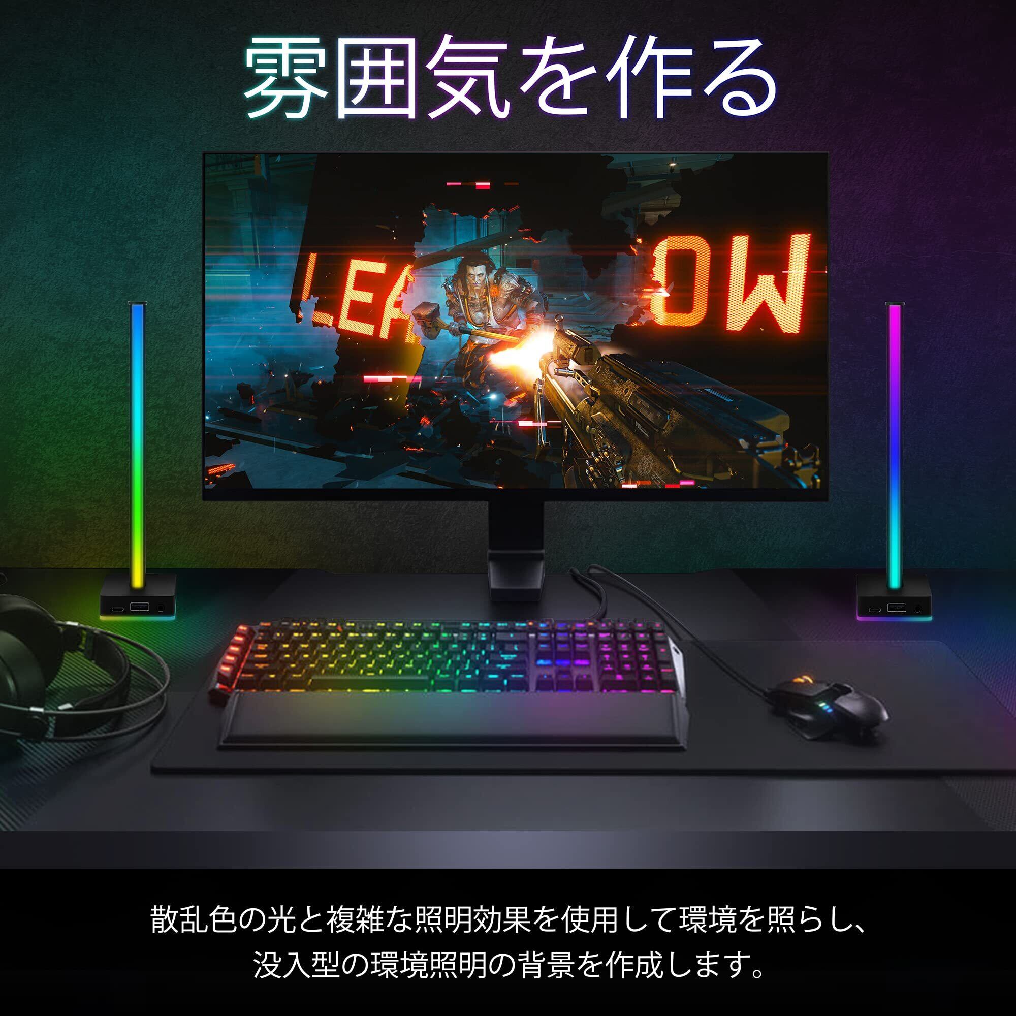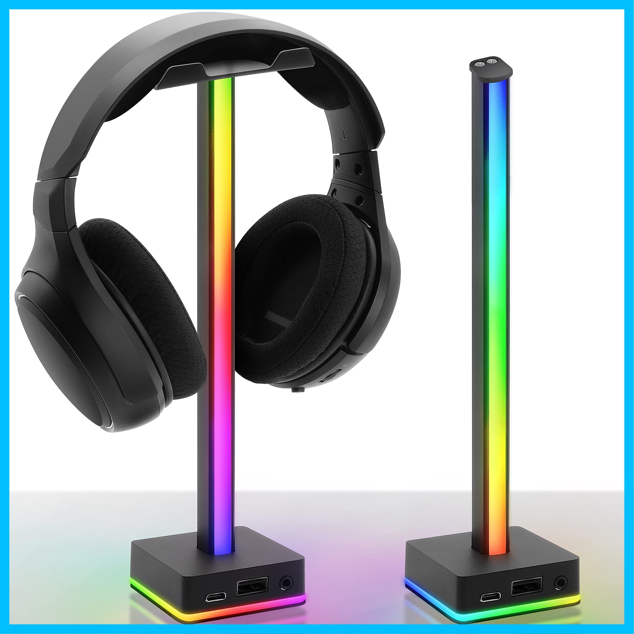 ヘッドセットホルダーまたはバックライトスタンドは、クールなゲームの雰囲気を作り出すために50の照明モードを提供します。ライトモードを変更し、ライトをオフにするための1つのボタン。