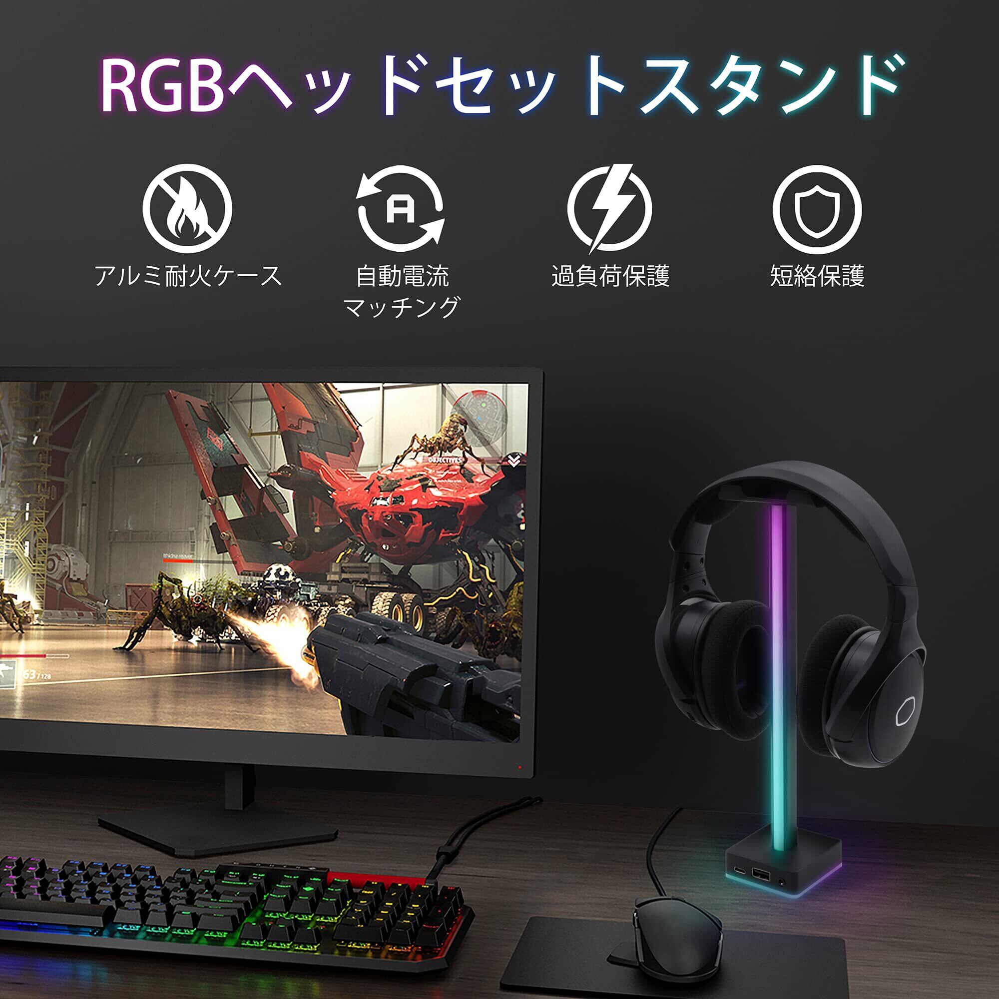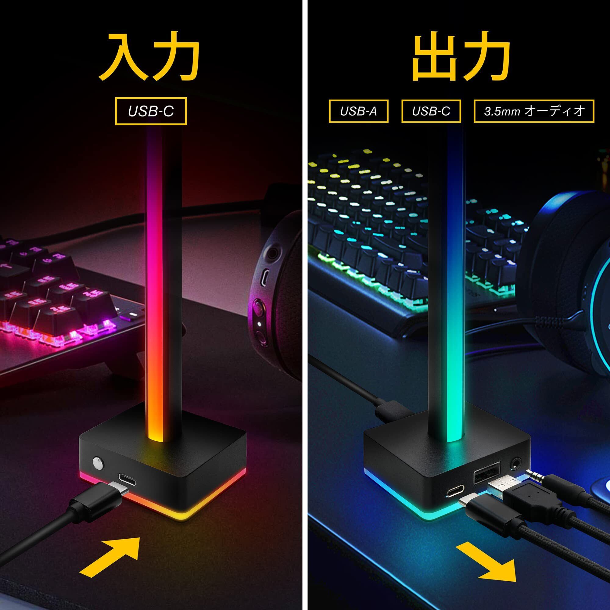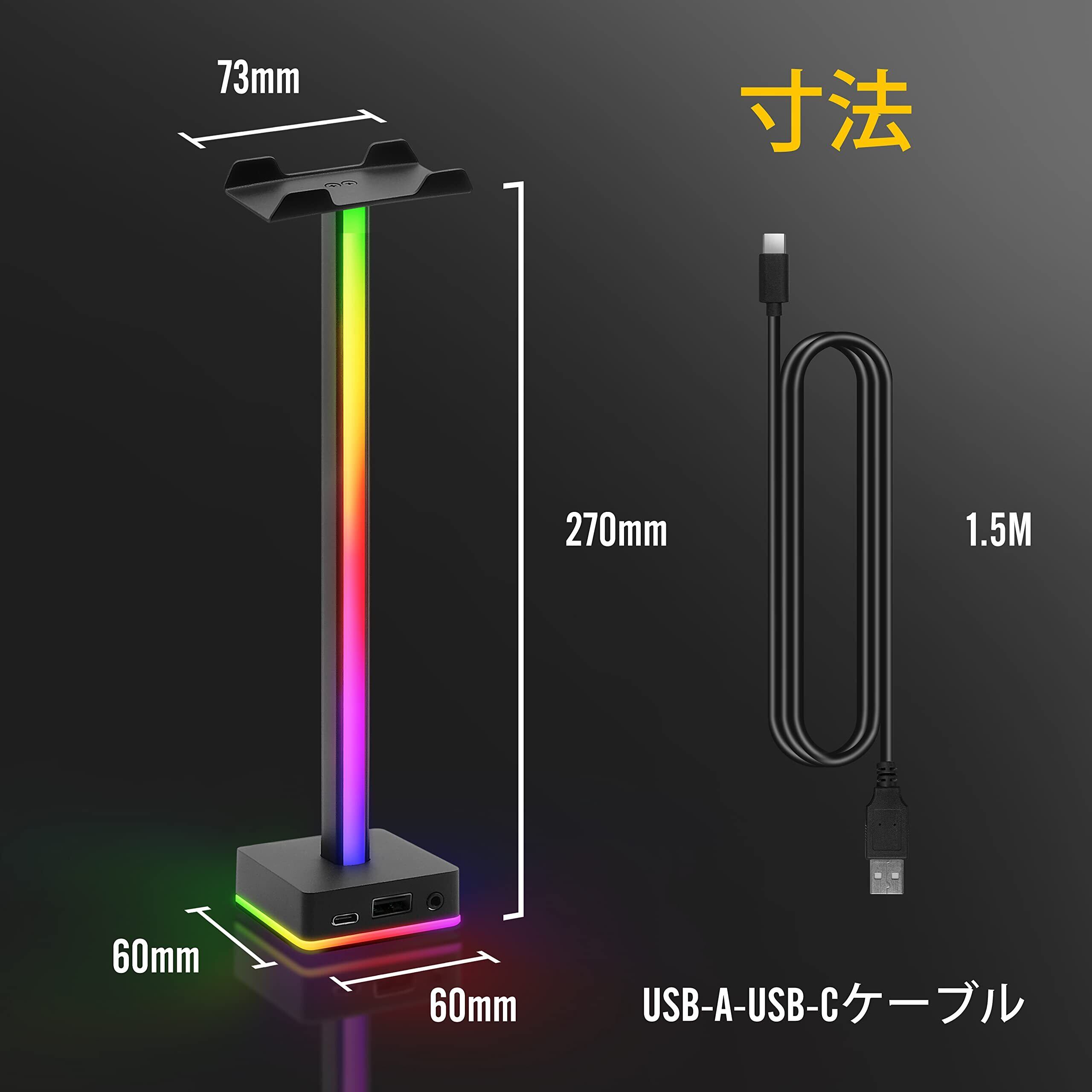 EZDIY-FAB 卓上 ヘッドホンスタンド USB LED デスクトップライト ヘッドセットスタンド 組み立て簡単 ヘッドセット テーブル 収納対策 PCデスク装飾LEDライト 50内蔵カラーモード RGB雰囲気ライトゲーム用 - ブラック