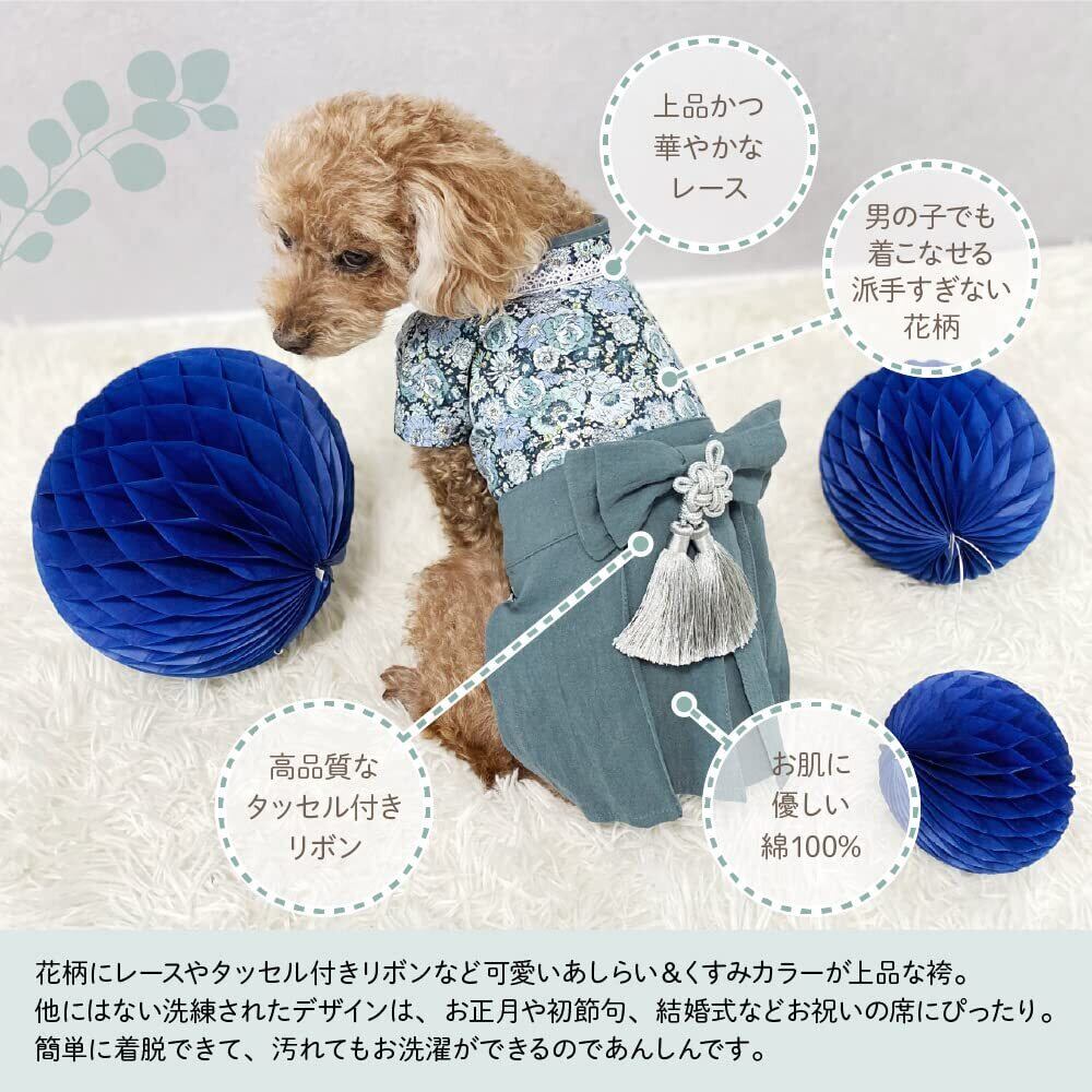 regalo ペット用袴 犬 犬服 小型犬 袴 猫 ペット用 晴れ着 和装 フォーマル 和服 着物 服 お宮参り 結婚式 花柄 ドッグウェア (ネイビー(ロイヤルネイビー))
