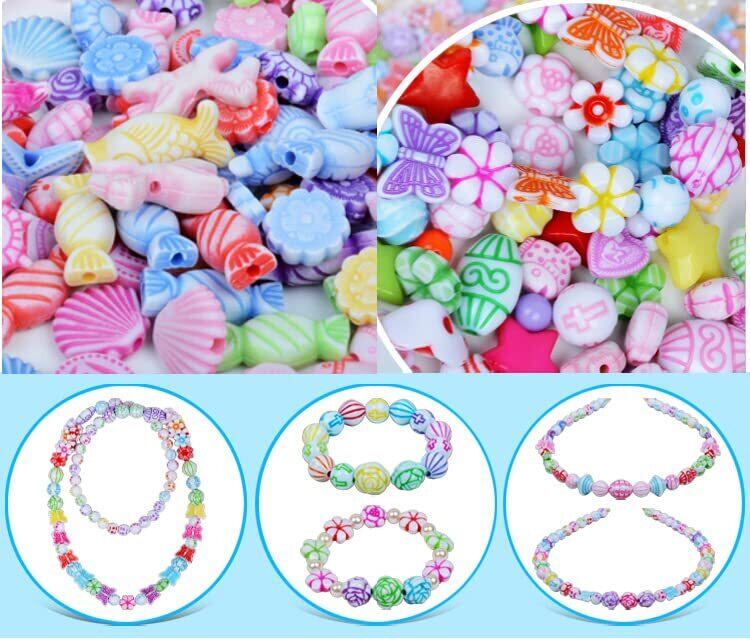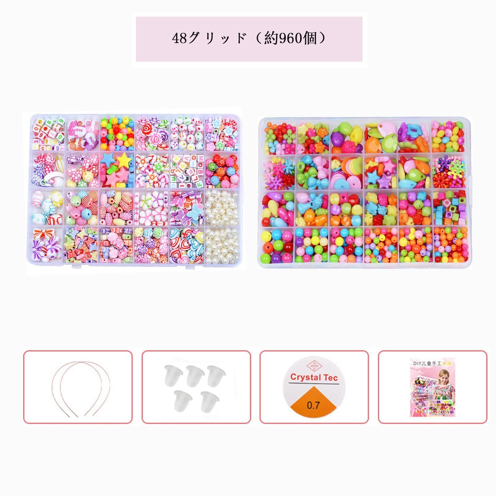 【48色セット内容】48種類ビーズ約550個*2セット、合計11000個。さまざまなアクセサリーが含まれていて、本当にお得です!ポリエステル糸*2、カチューシャ*2、付属品など。収納ボックス付き:収納や持ち運びや保管が簡単です。