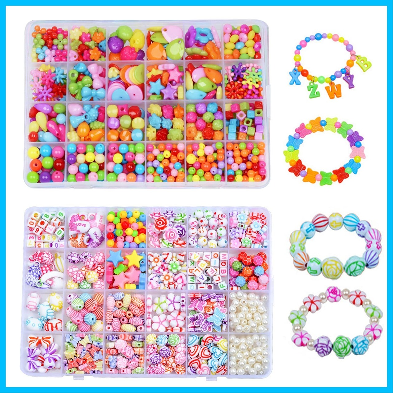 2個セット ビーズ手芸 アクセサリーキット DIY 手作り アルファベットビーズ 女の子 贈り物 ジュエリー用 子供のお誕生日プレゼント ギフト クリスマス メイキングトイ ハンドメイド ネックレス ブレスレット 指輪 指先 リング カラフル パーツ セット 収納ケース付き (ミックス B)