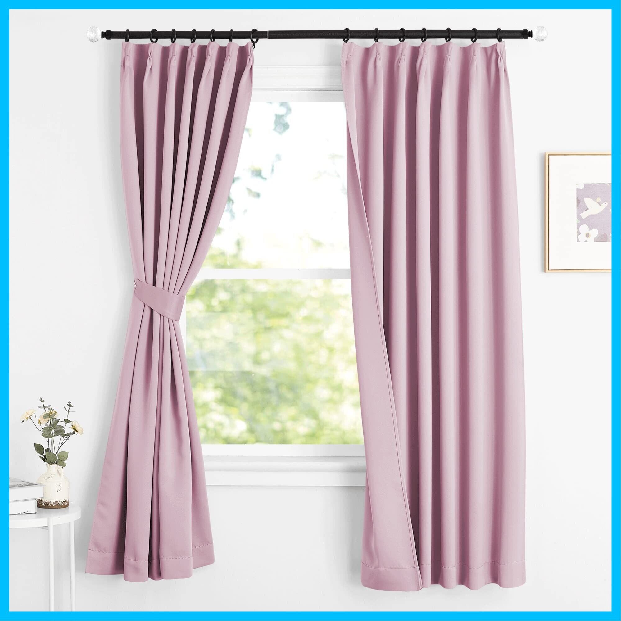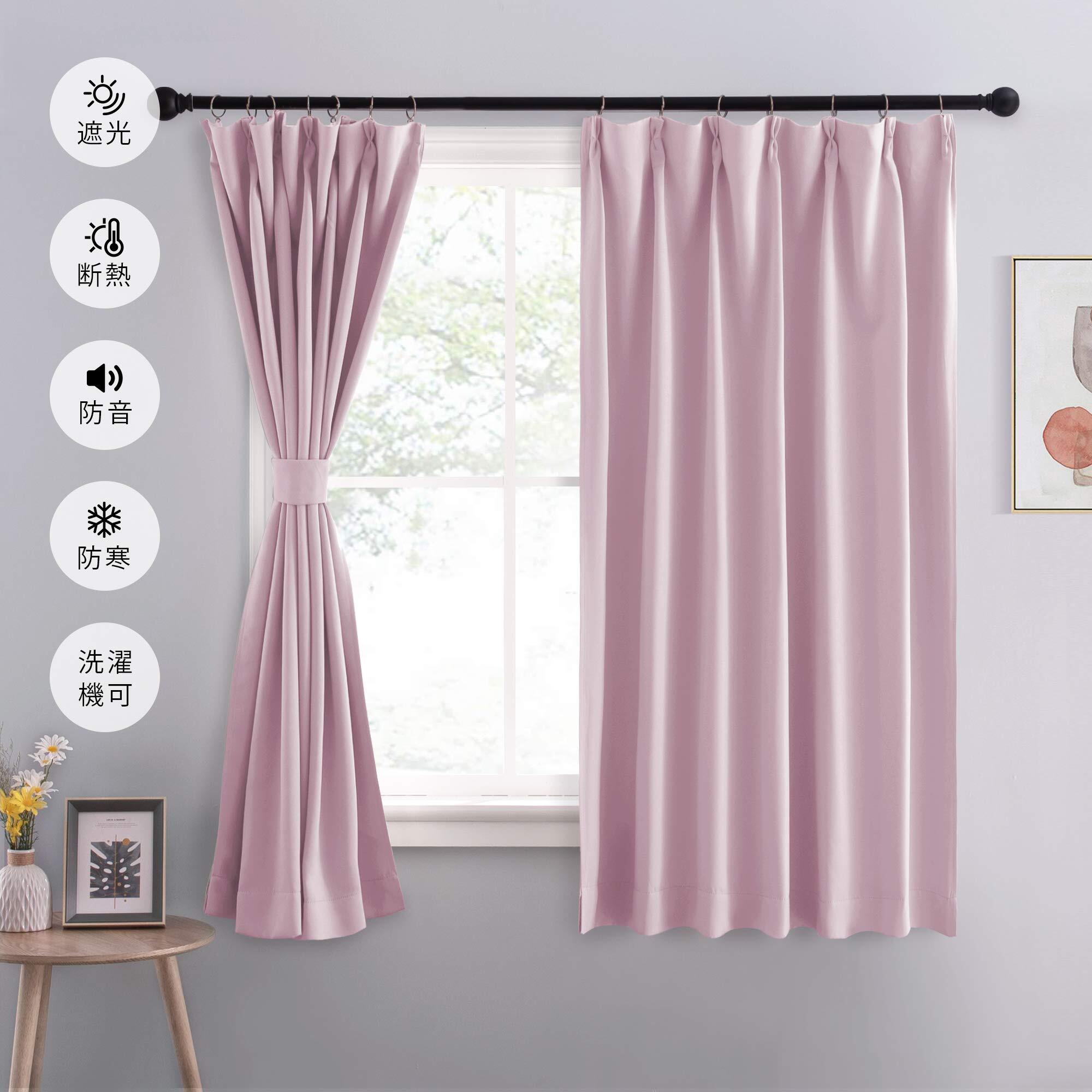 NICETOWN カーテン 遮光 断熱 防寒 幅100cm丈110cm ピンク 2枚セット 省エネ 冷暖房の効率アップ 防音 カフェーカーテン 出窓 腰窓 部屋 寝室 幼児園 喫茶店