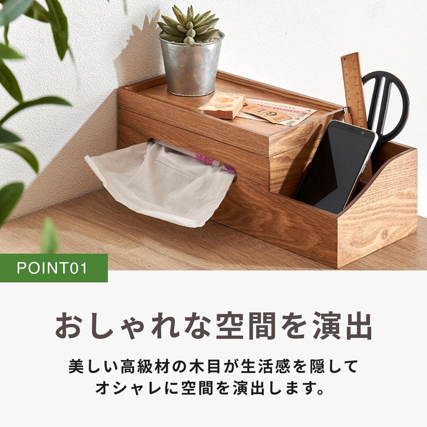 高級材の雰囲気を楽しむ小物収納インテリア。家具高級材で知られるウォールナット天然木を小物インテリアに使用しました(突板仕様)。美しい木目がインテリアに溶け込みやすいデザインです。