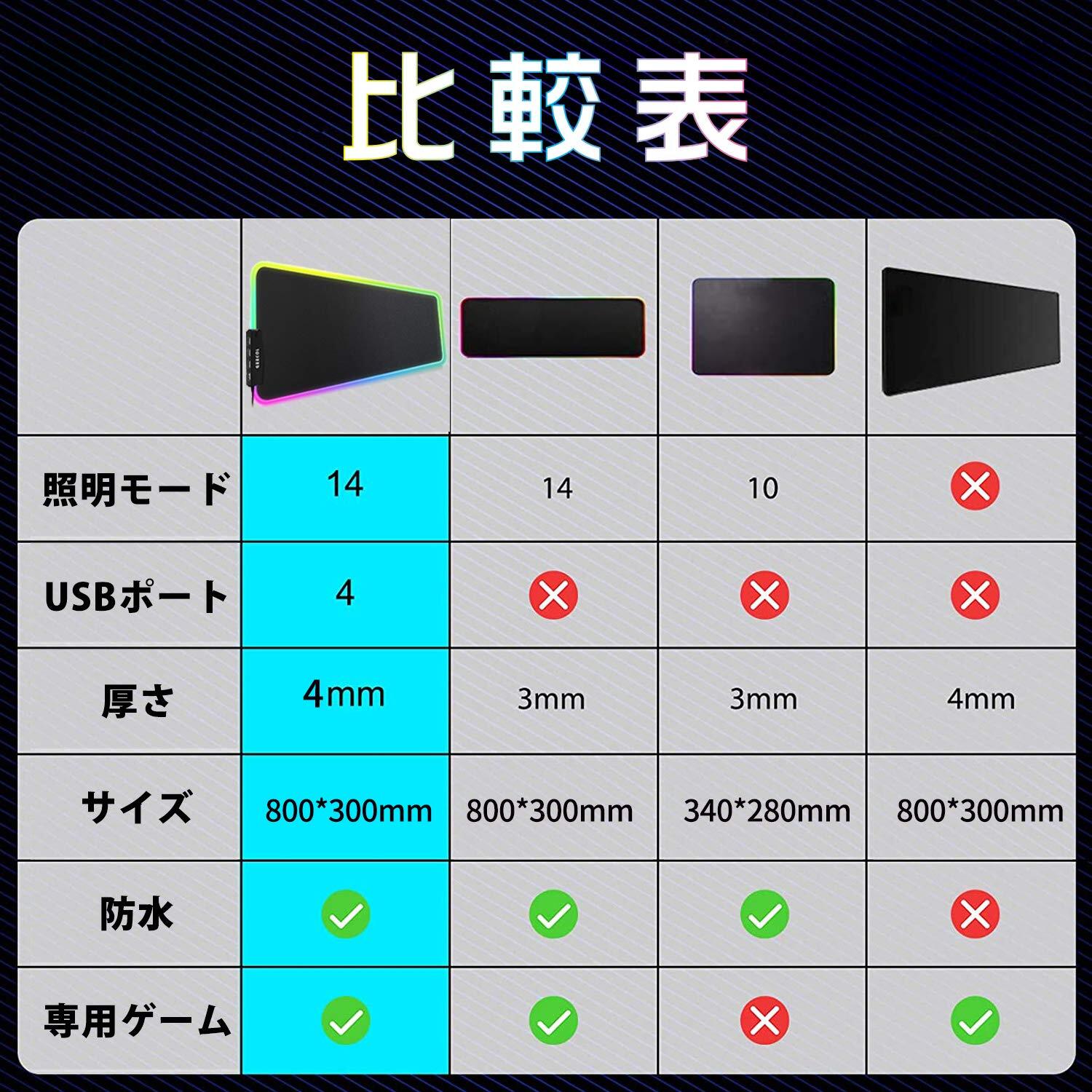 ゲーミングマウスパッド 大型キーボードパッド 防水RGB ズレない設計 4USBケーブル付属 ブラック