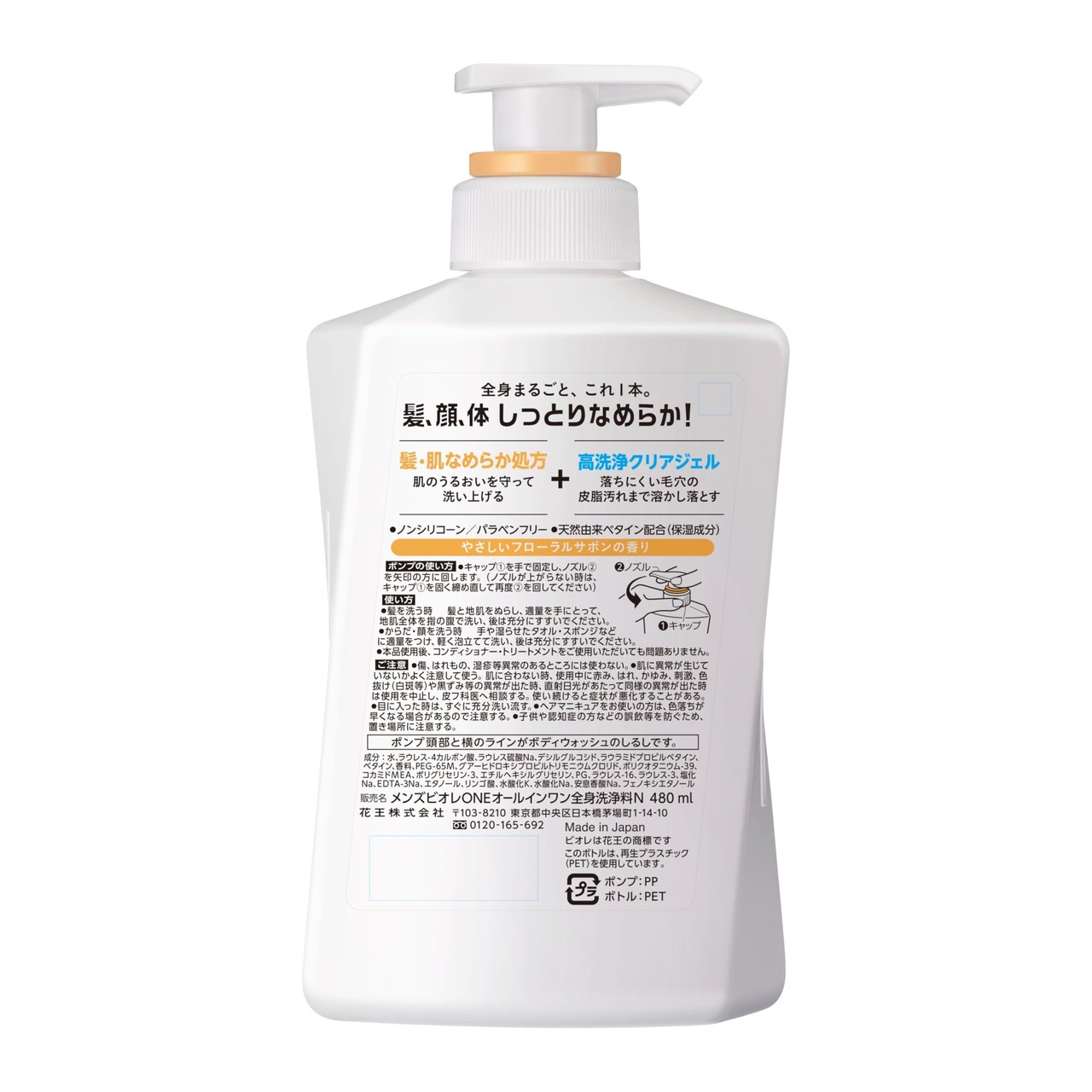 メンズビオレ ワン (ONE) オールインワン 全身洗浄料 髪・肌なめらかタイプ フローラルサボンの香り ポンプ 480ml 《 髪 ・ 顔 ・ 体 全てを洗える メンズビオレ》 ボディソープ