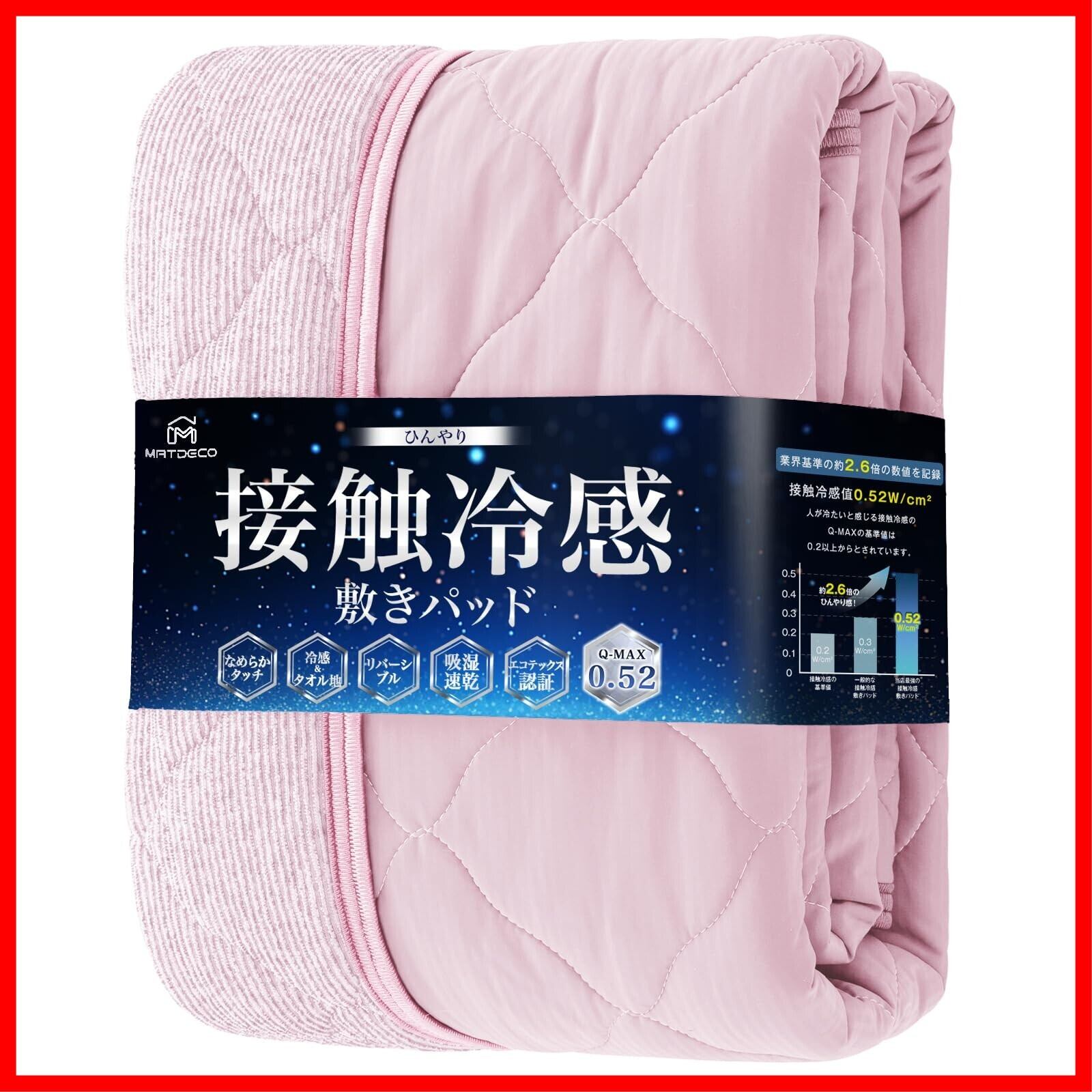 Matdeco 冷感 敷きパッド しきぱっと セミダブル 接触冷感 Q-MAX0.52 夏 敷パット ひんやりシーツ 夏用しきぱっと 両面使える敷きパッド 冷感&タオル地 れいかんしきぱっど 抗菌 防臭 防ダニ 吸水速乾 リバーシブル 四隅ズレ防止ゴムバンド付き 洗える ピンク 120×200cm