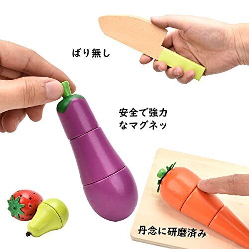 CARLORBO おもちゃ おままごと 新鮮お野菜&果物 木製切れちゃう!マグネット式 フルーツ&おやさいセット 子供 モンテッソーリ玩具 木箱入り