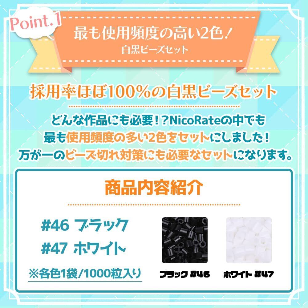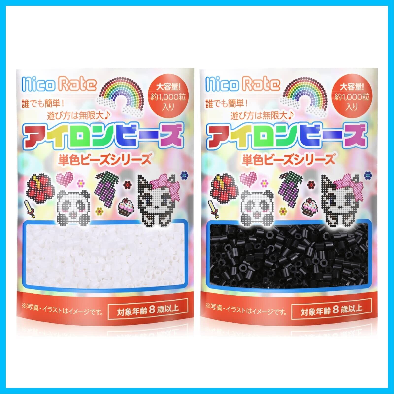 NicoRate アイロンビーズ 単色 補充用 『最も使用頻度が高い!白黒セット』 チャック付き 小分け 各約1000粒 合計約2000粒