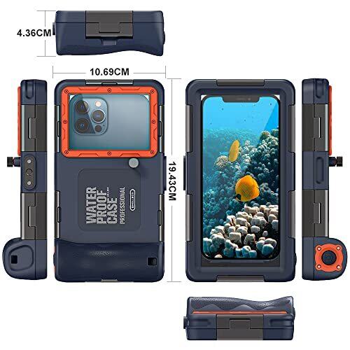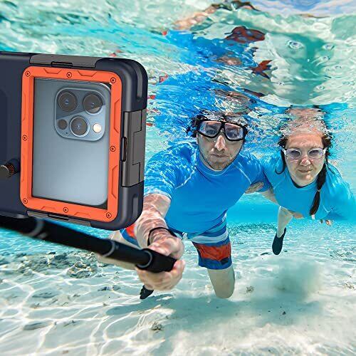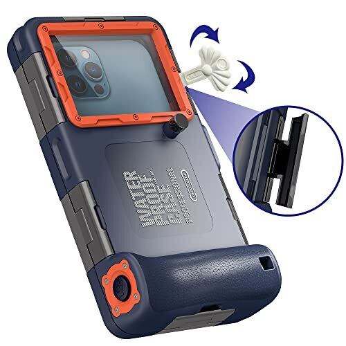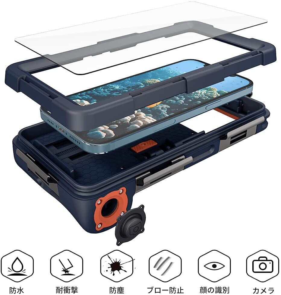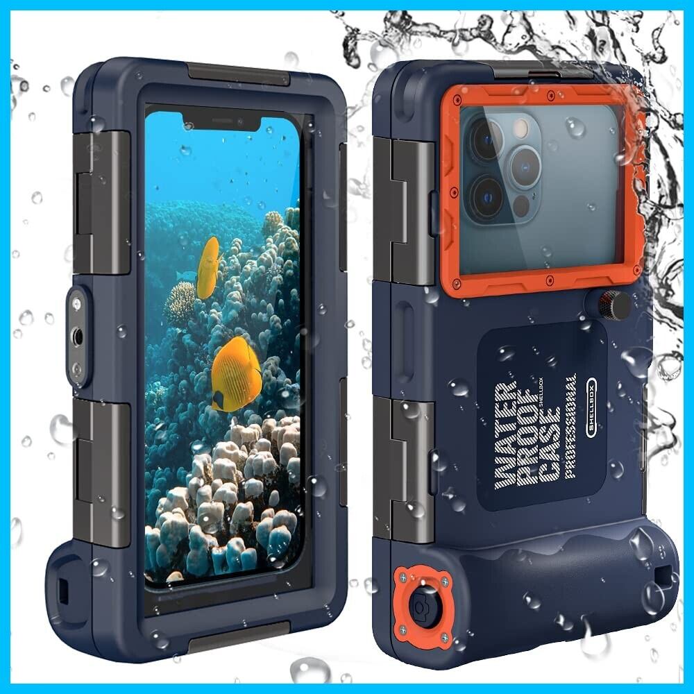 ブル+iPhone水中ケース IPX8防水レベル水深15mまで潜水・水泳・海水浴・夏フェス・温泉・お釣り用防水ポーチ ストラップ付き (ブル+オレンジ)