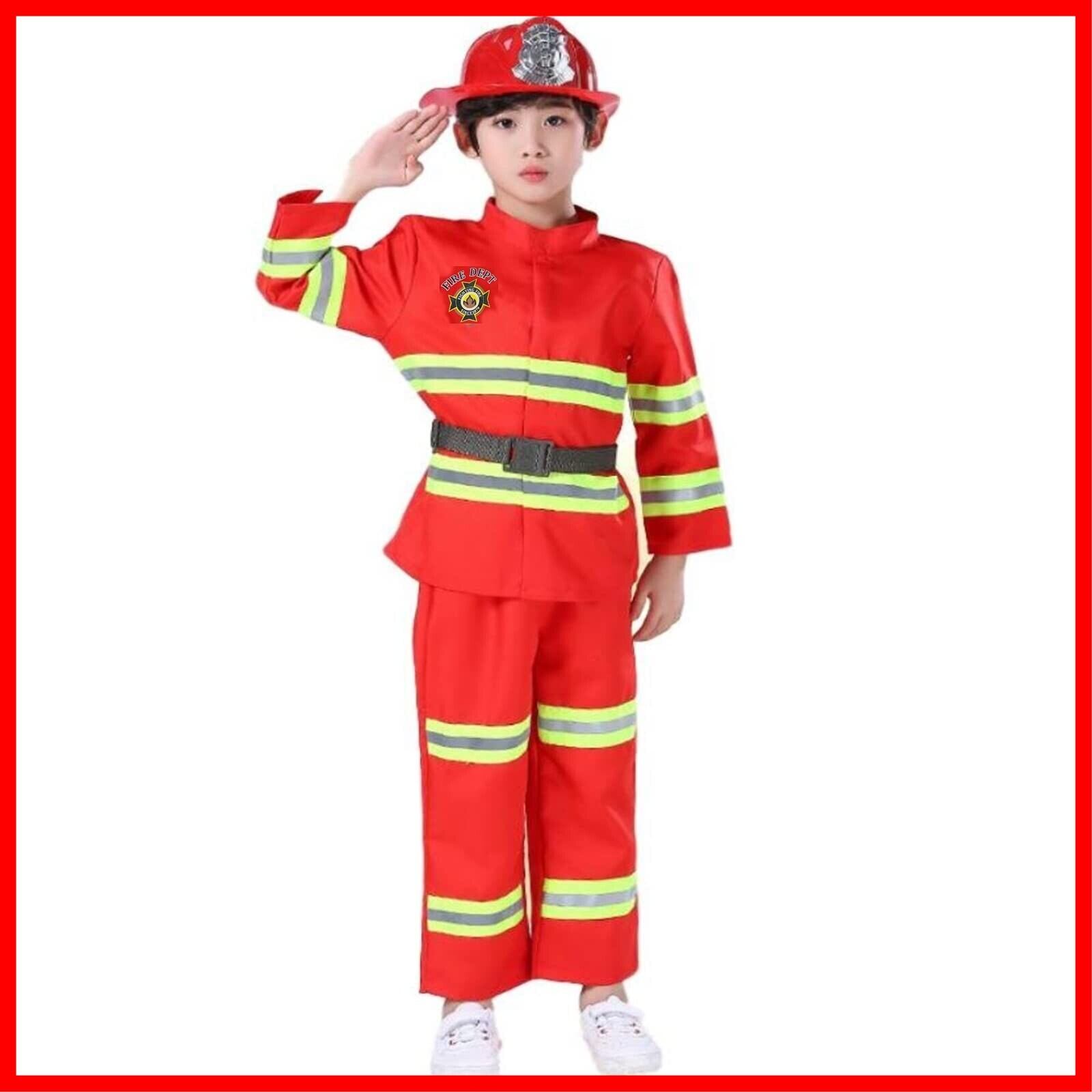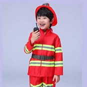 勇敢な消防士はキッズの憧れ。一度は着てみたいその制服!カッコいい消防隊員になりきれる小道具のついたセットです。