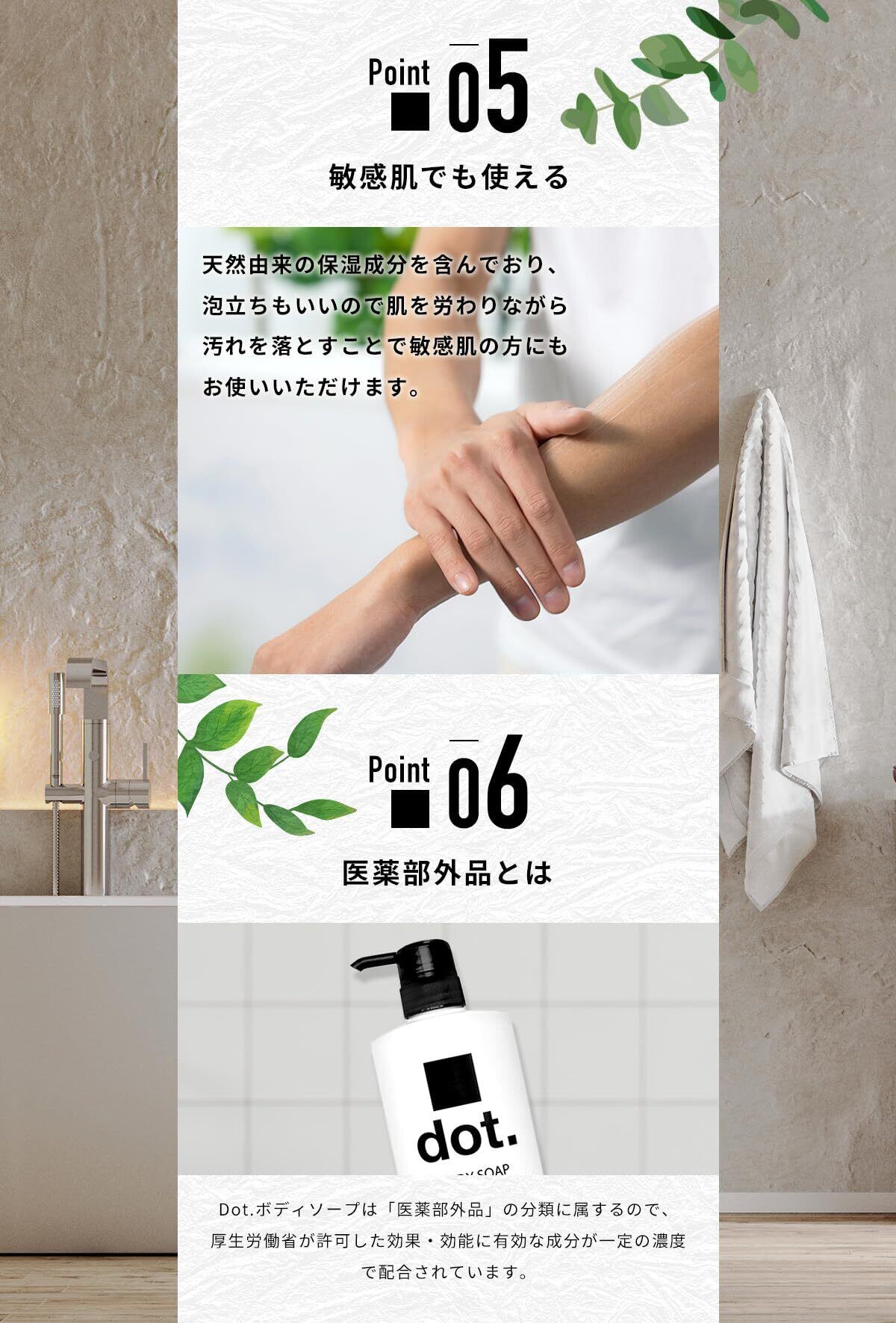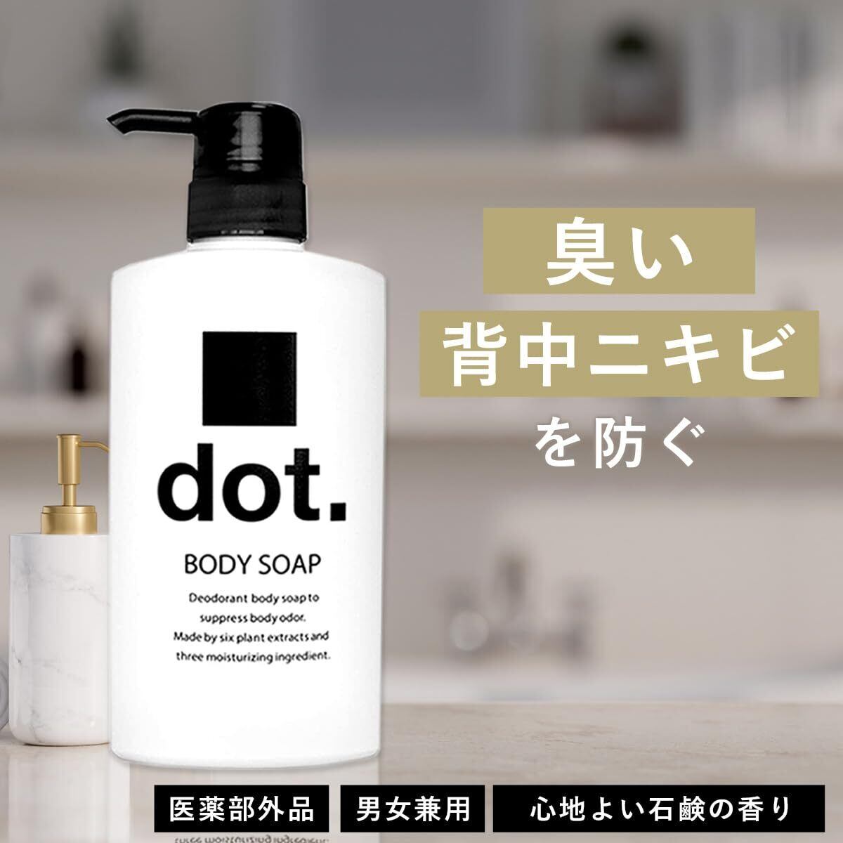 【dot】デオドラント ボディーソープ。『臭いの元を抑えしっかり洗浄』体臭、汗臭、背中ニキビを防ぐ。メンズ、レディース問わず、男女兼用、ご家族でもご利用頂けます。
