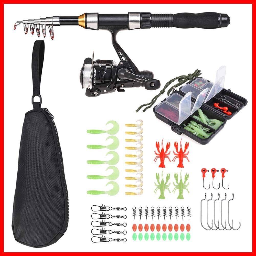 Lixada 釣りセット 釣り竿セット 初心者 子供も適用 伸縮釣り竿 1.5 m スピニングリール 収納バッグ付き 持ち運びが便利 海釣り 川釣り 投げ釣り