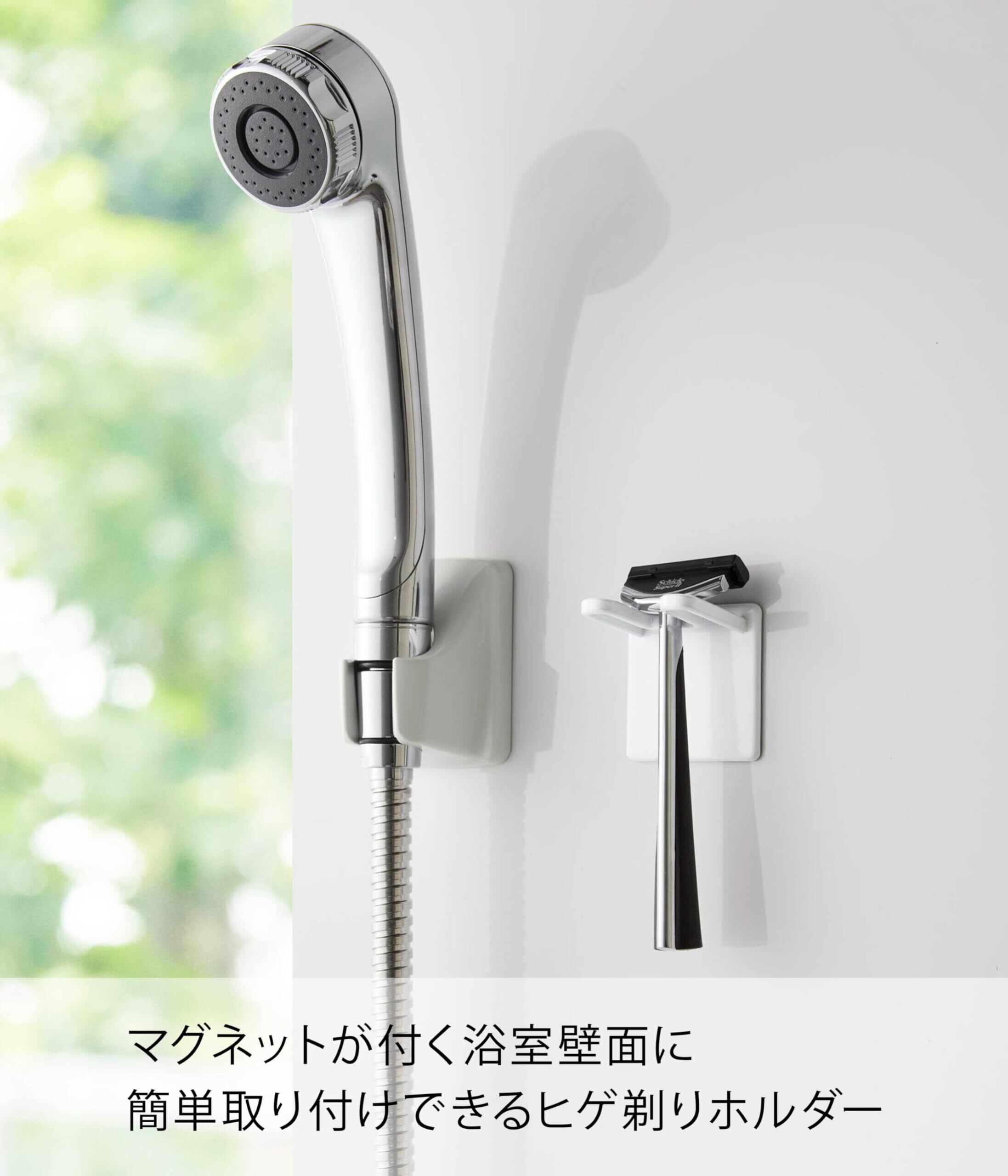 マグネットが付く浴室壁面に簡単に取り付けできるヒゲ剃りホルダー。