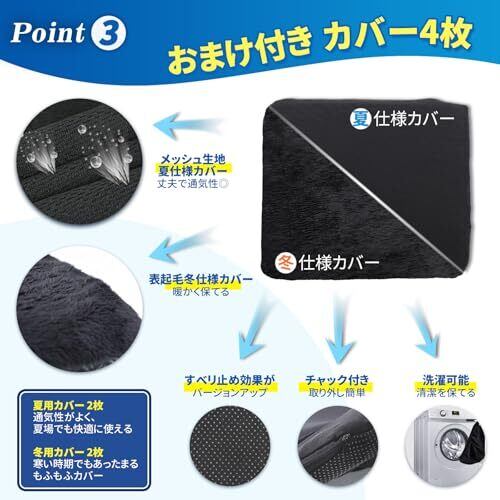 【洗えるクッションカバー四枚付き】夏用カバーと冬用カバーそれぞれ二枚付属。カバーは簡単に取り外して洗える、いつも清潔に保つ。カバーの裏面に滑り止め付き、ズレにくい。