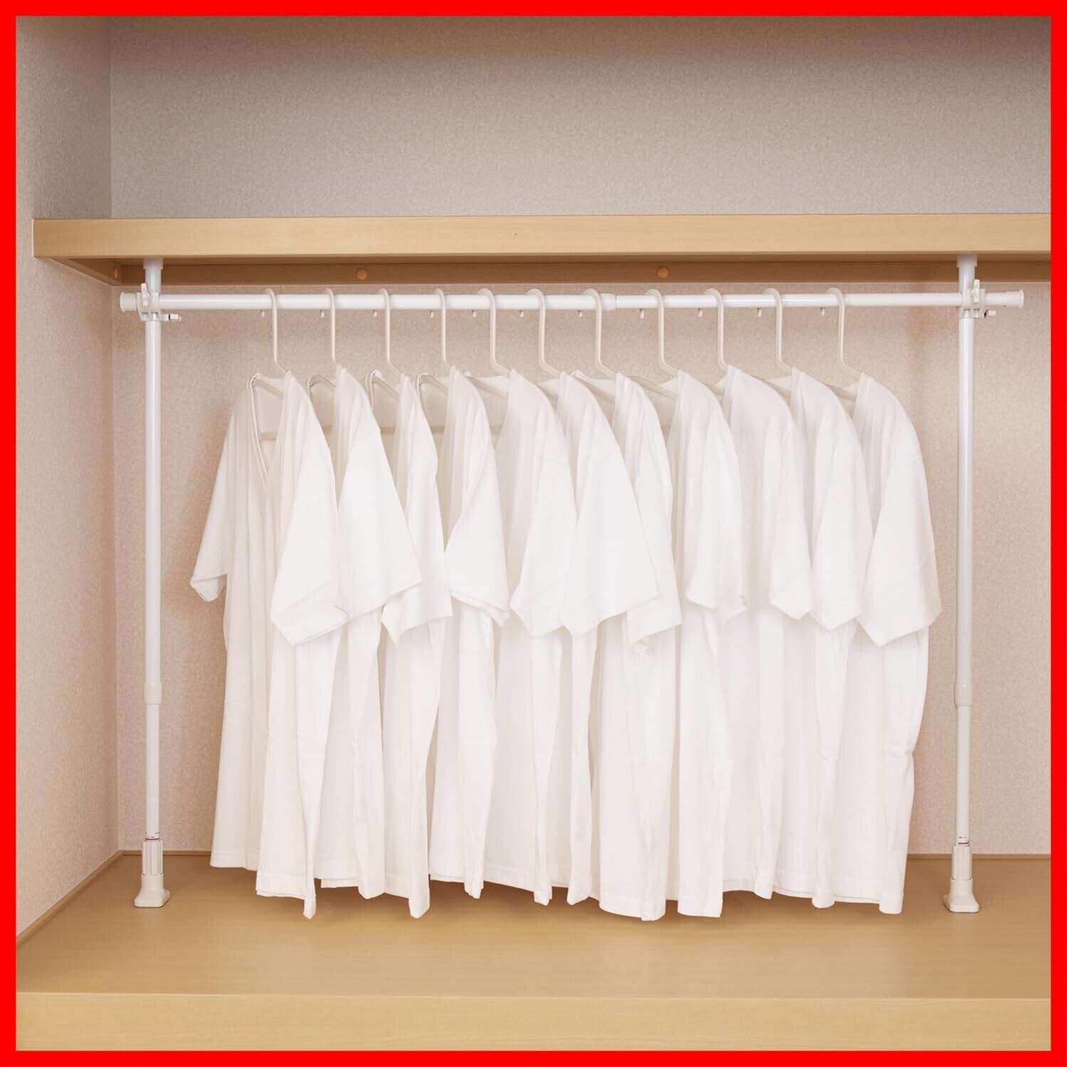 高さ・幅を調整できるので、クローゼットや押入れなど置きたい場所のサイズに合わせて衣類を掛けるハンガーを設置できる。