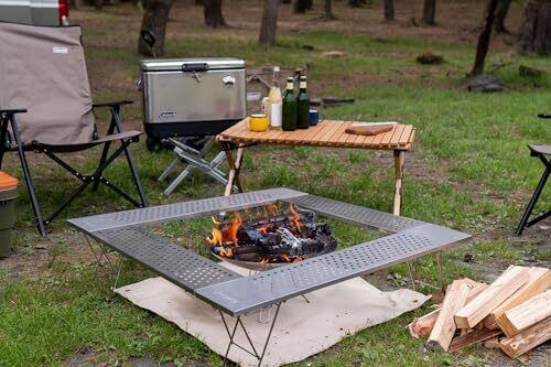 【使用シーン】アウトドアやキャンプ、バーベキューなどで焚火台を使用する際に、火の粉による地面へのダメージや延焼を防ぐために使用します。
