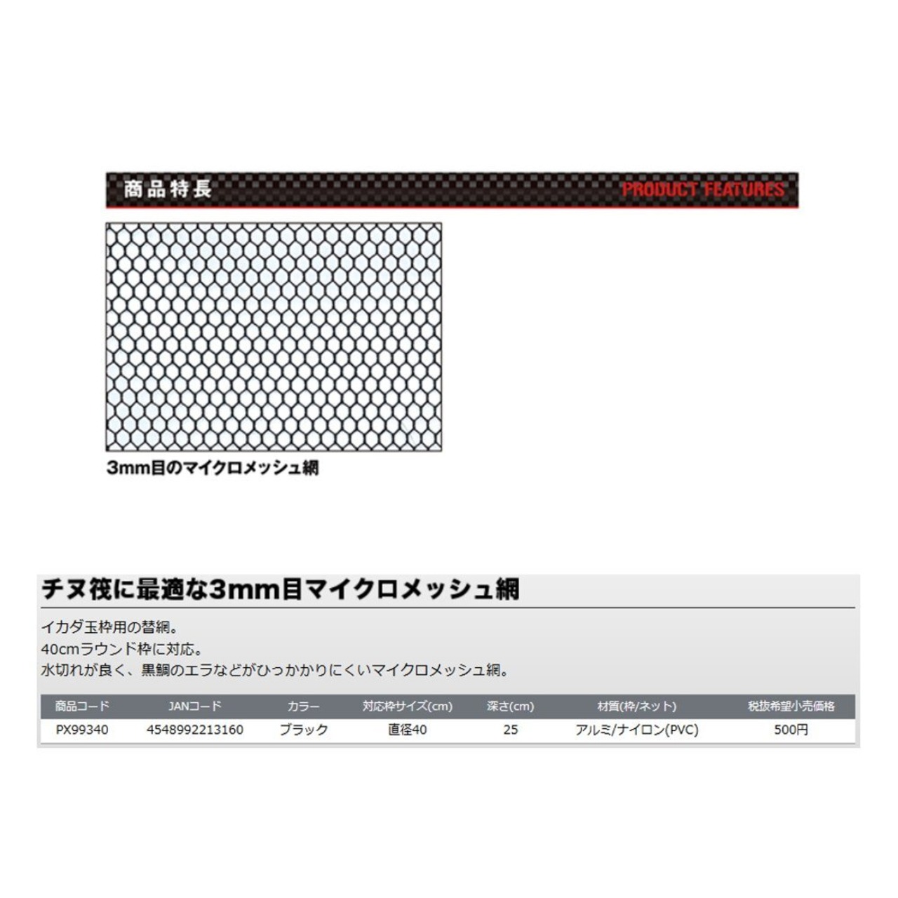 プロックス(Prox) イカダマイクロメッシュ替網 40/ブラック PX99340